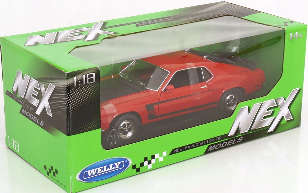 Ford Mustang Boss 302 1969 Welly Red 1:18 Metal Model Open