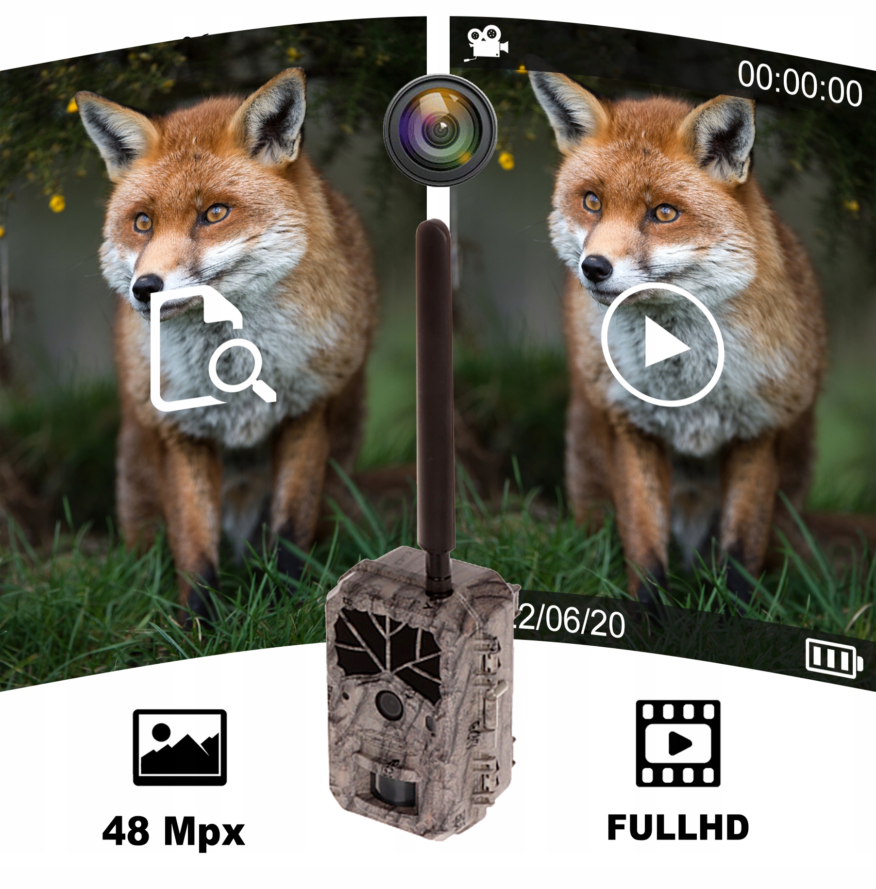 ✅ Камера в фотоловушке также может записывать короткие видеоролики — она снимает автоматически после регистрации движения внутри дальность действия PIR-сенсора (25 метров).
