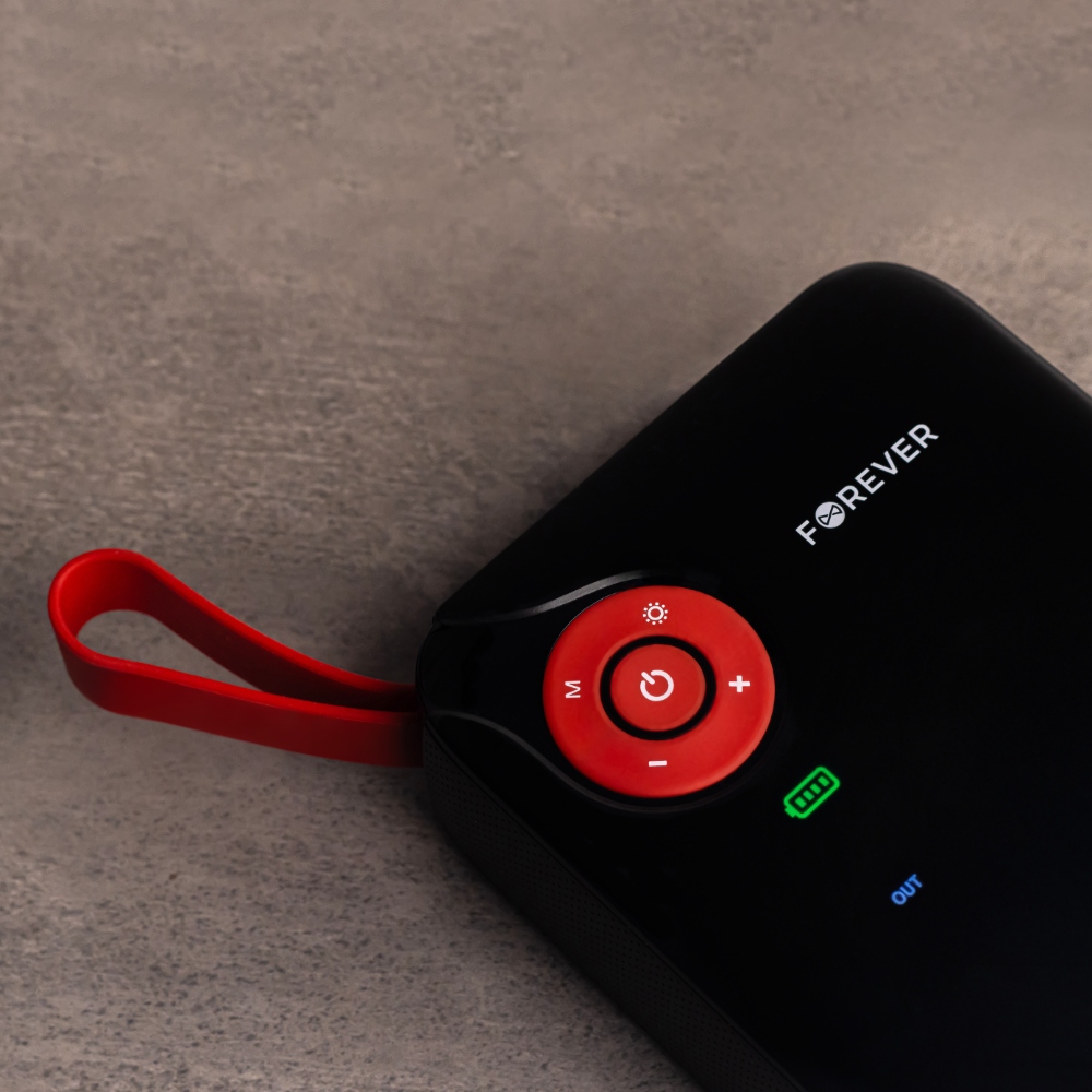 Forever Jump Starter JS-400 — компактный автомобильный стартер емкостью 7200мАч, обеспечивающий надежную поддержку в нештатных ситуациях на дороге. Благодаря способности обеспечивать пусковой ток до 600А эффективно запускает транспортные средства, дополнительно оснащен компрессором с максимальным давлением 150PSI и светодиодным фонариком.
