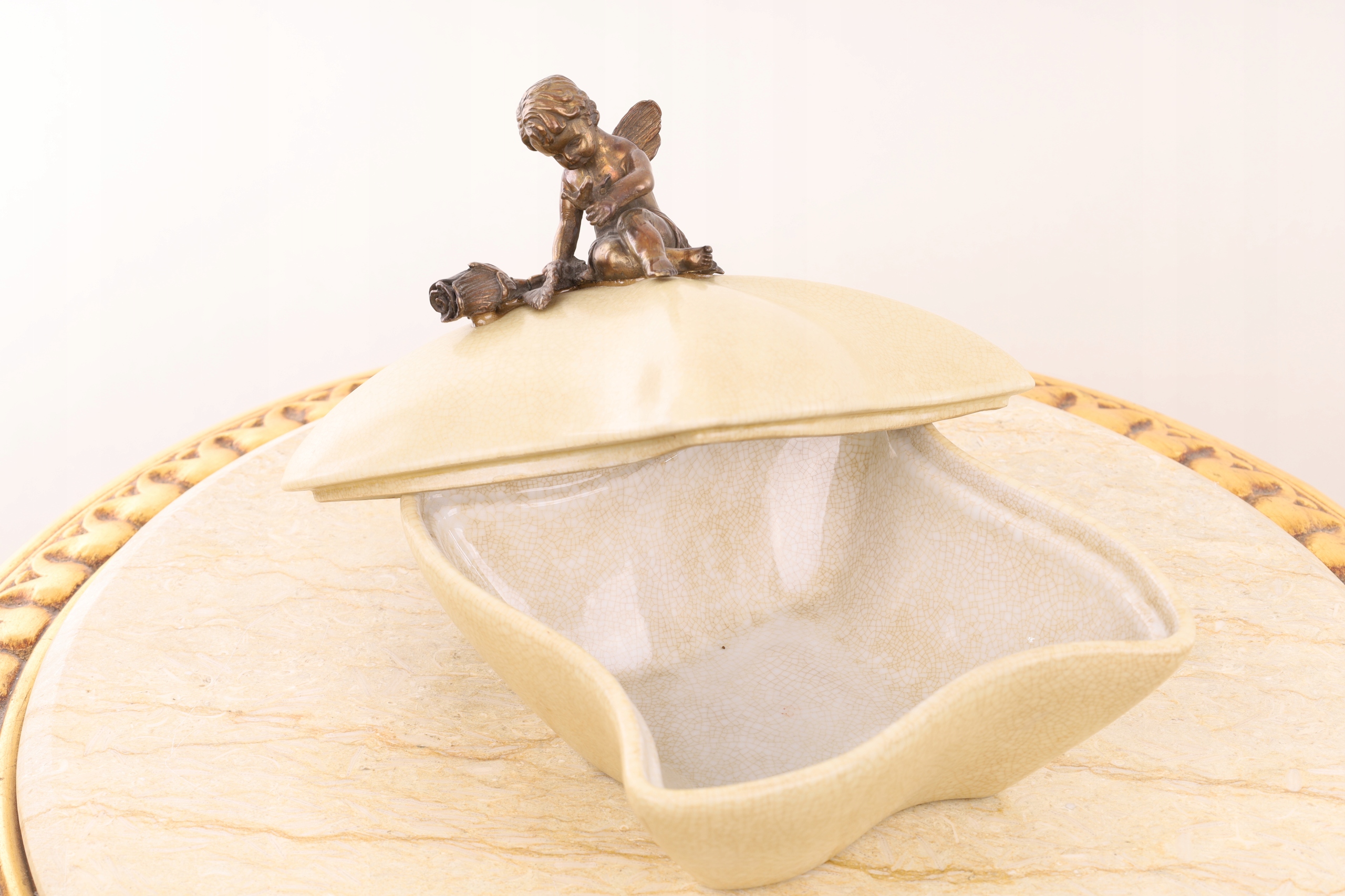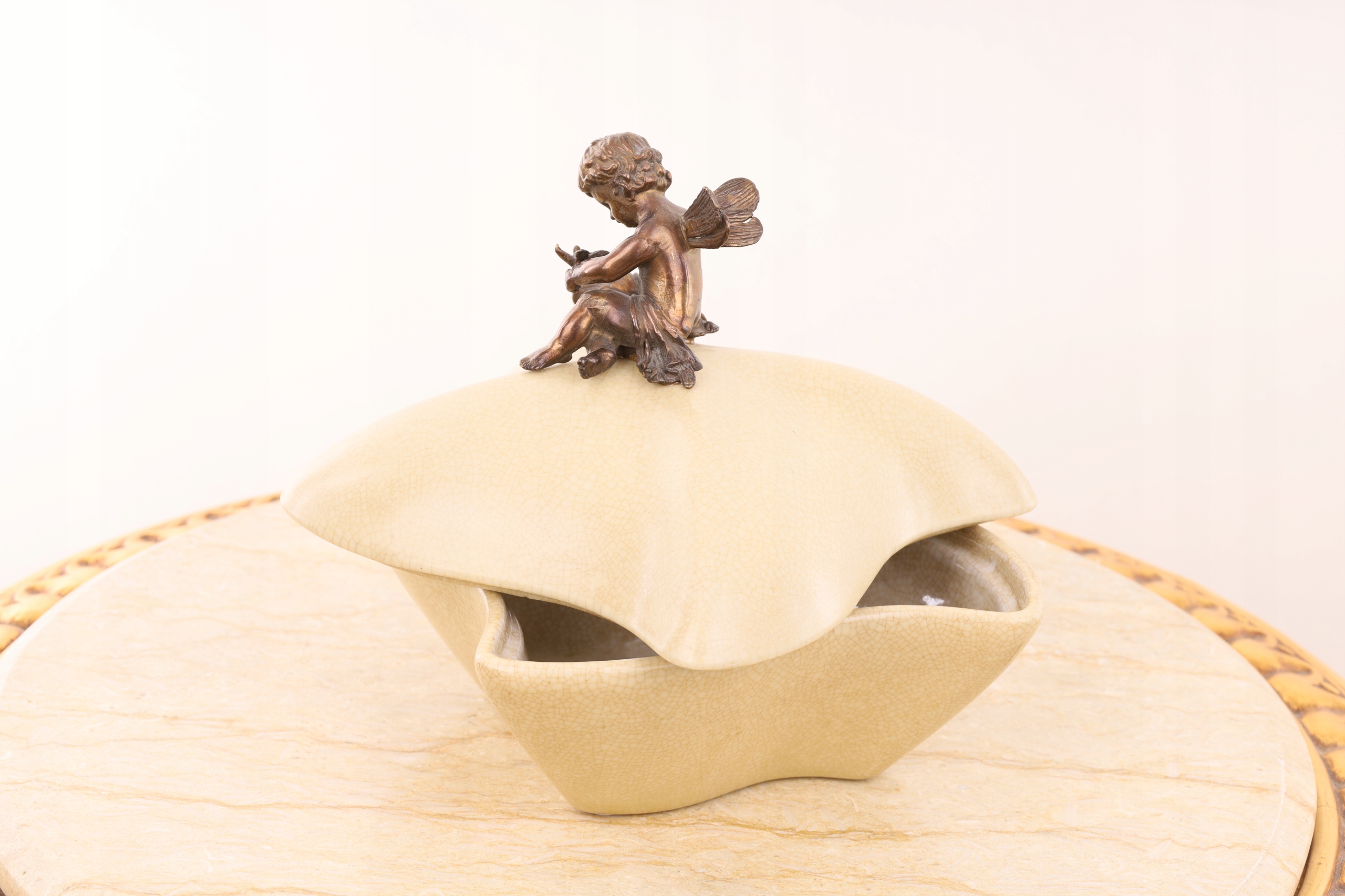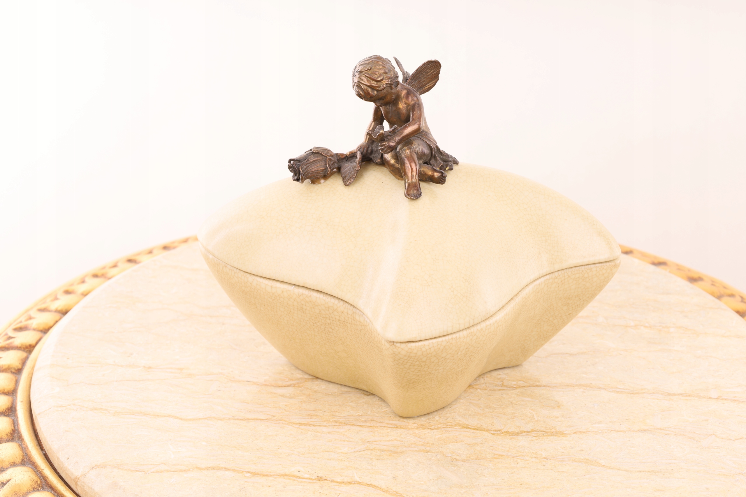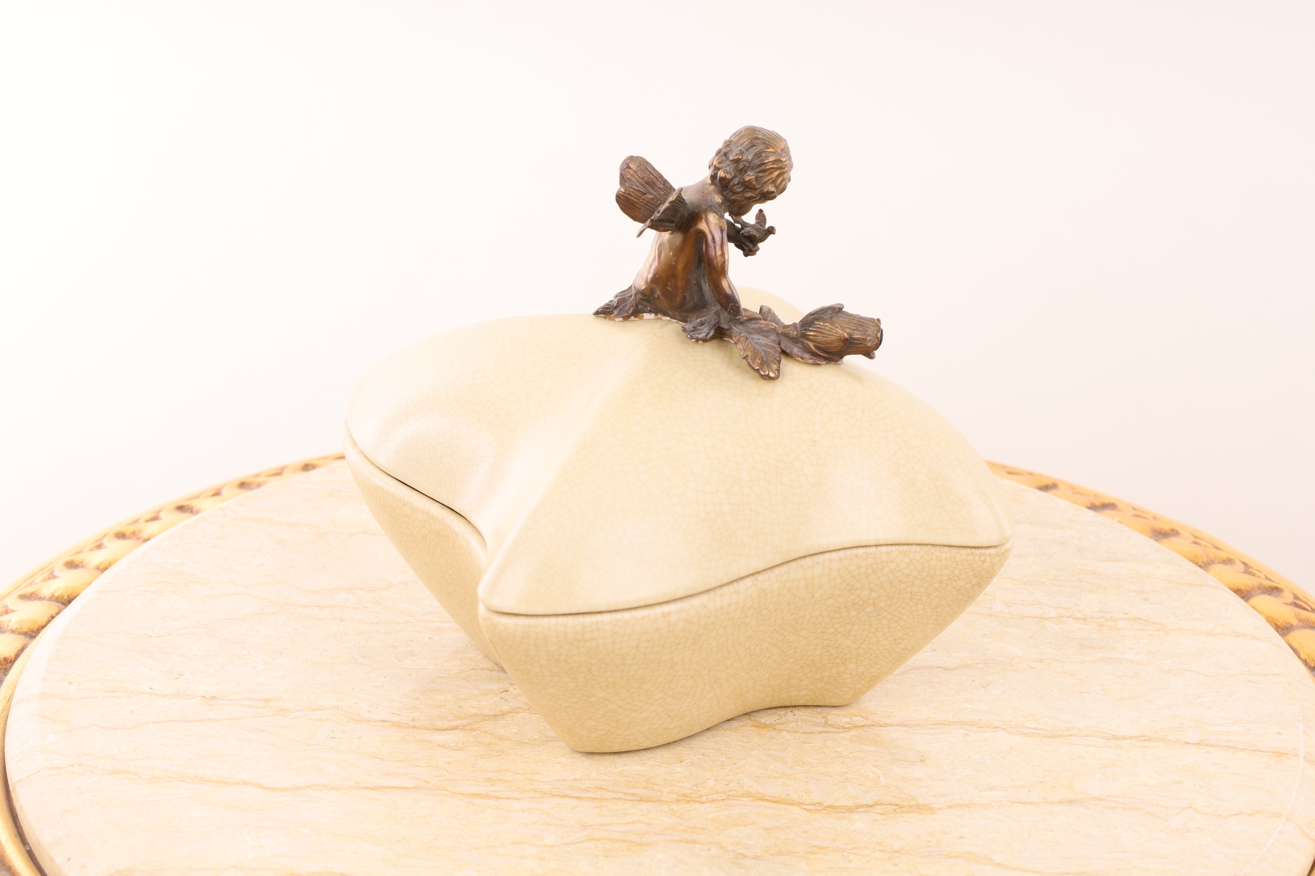 ФАРФОРОВАЯ ШКАТУЛКА С БРОНЗОВЫМ АНГЕЛОМ! Экрю
