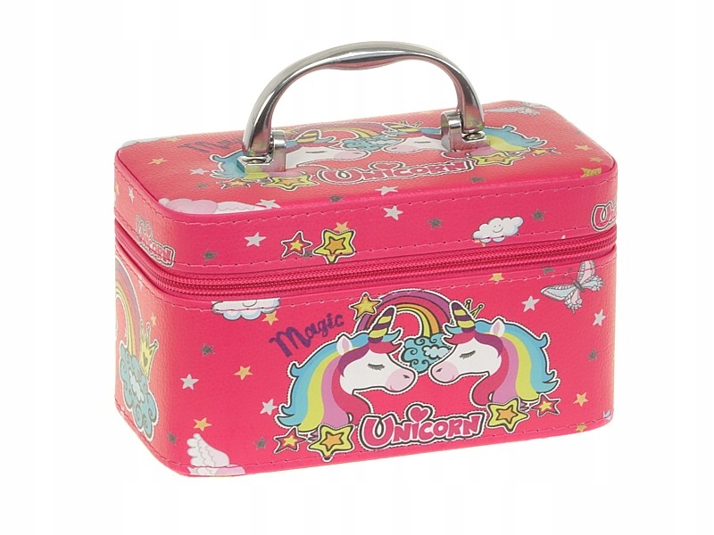 Коробка, изготовленная с особой тщательностью, имеет одно просторное отделение, обтянутое тканью. Закрывается на молнию с декоративной ручкой. В открытом состоянии в верхней части находится зеркало. Идеально подходит для хранения первой косметики девочек. Его также можно использовать как место для хранения школьных принадлежностей или других мелких предметов. Благодаря удобной металлической ручке ваш ребенок сможет брать свою косметичку куда захочет.