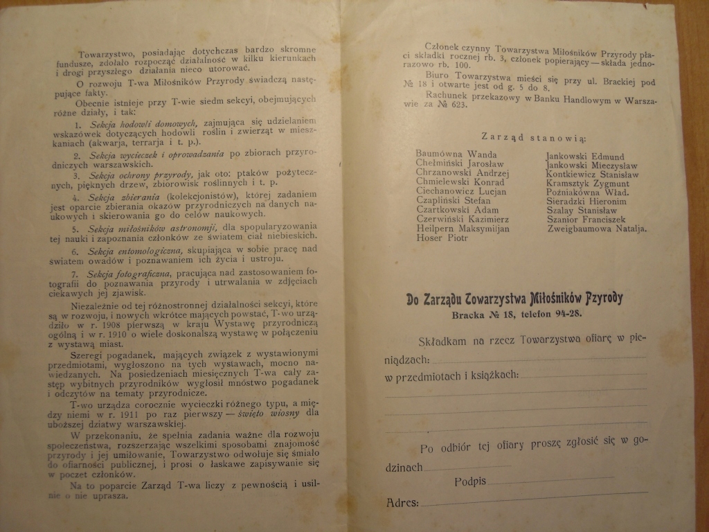 ФОРМА ЧЛЕНСТВА ТОВАРИСТВА ЛЮБИТЕЛІВ ПРИРОДИ 1911р.