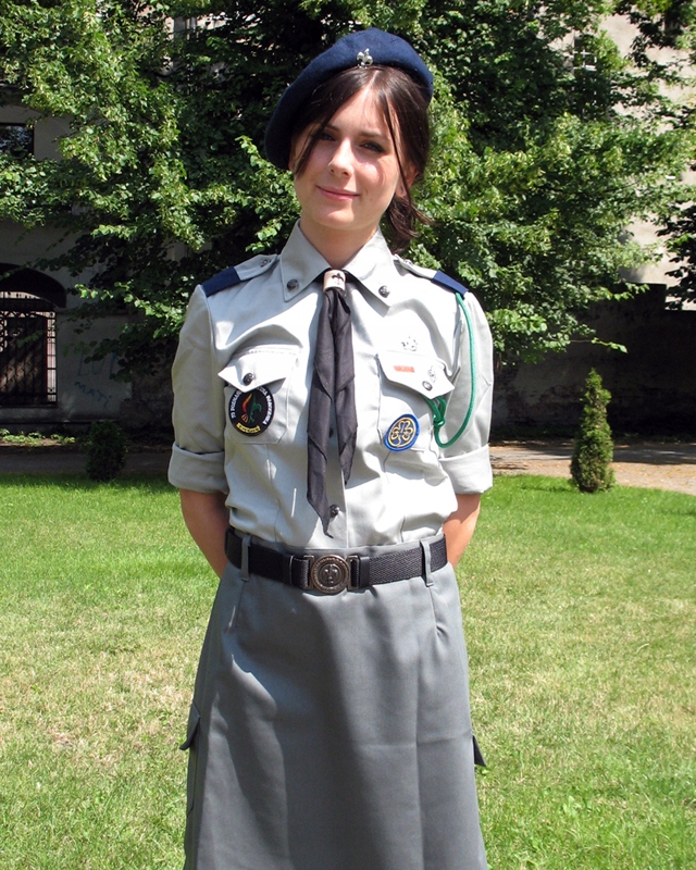 Для девочки мы выберем серую рубашку, а для мальчика зеленую рубашку – хаки. На момент покупки на форменной рубашке ЖП на левом кармане пришит польский флаг и логотип ЖП - характерная лилия.