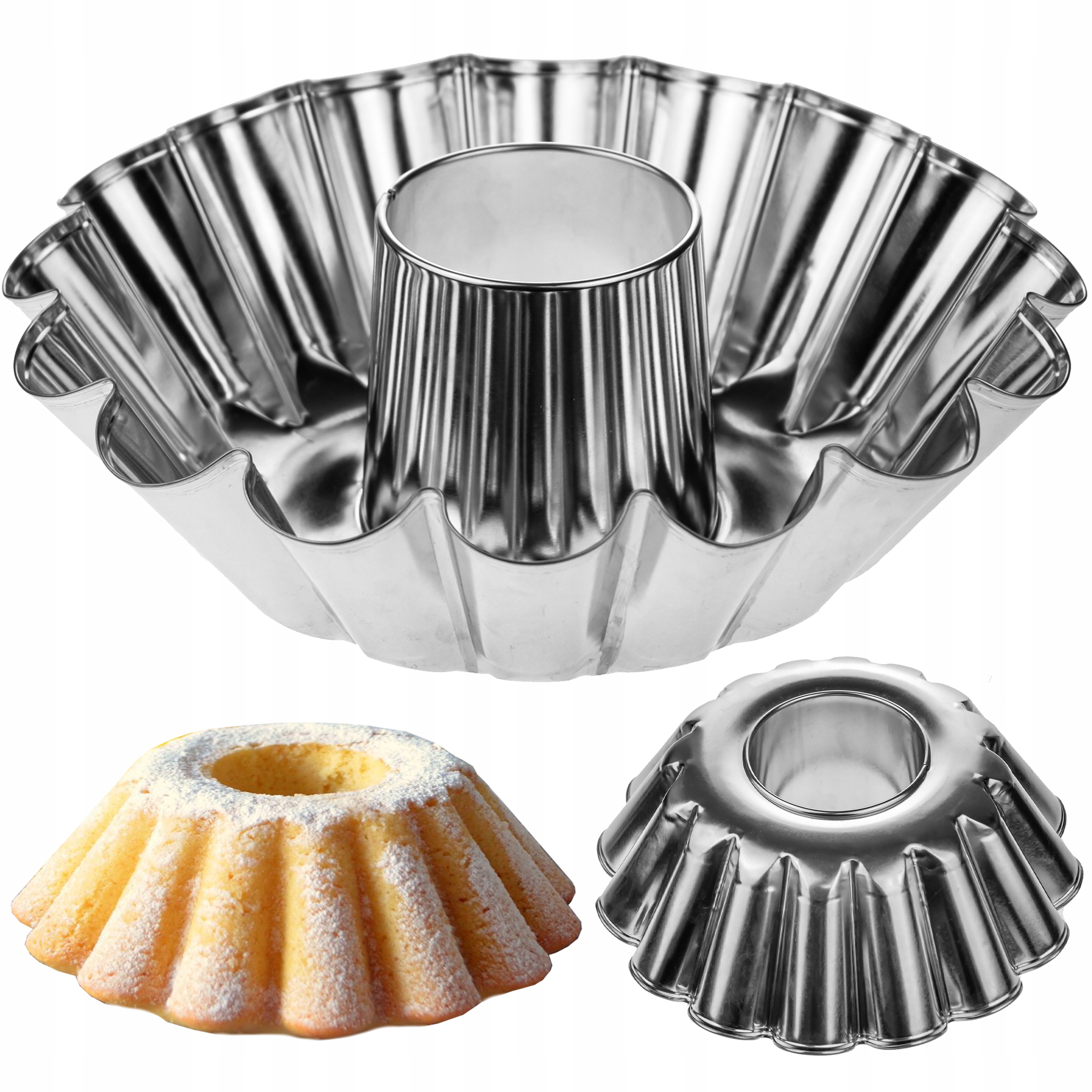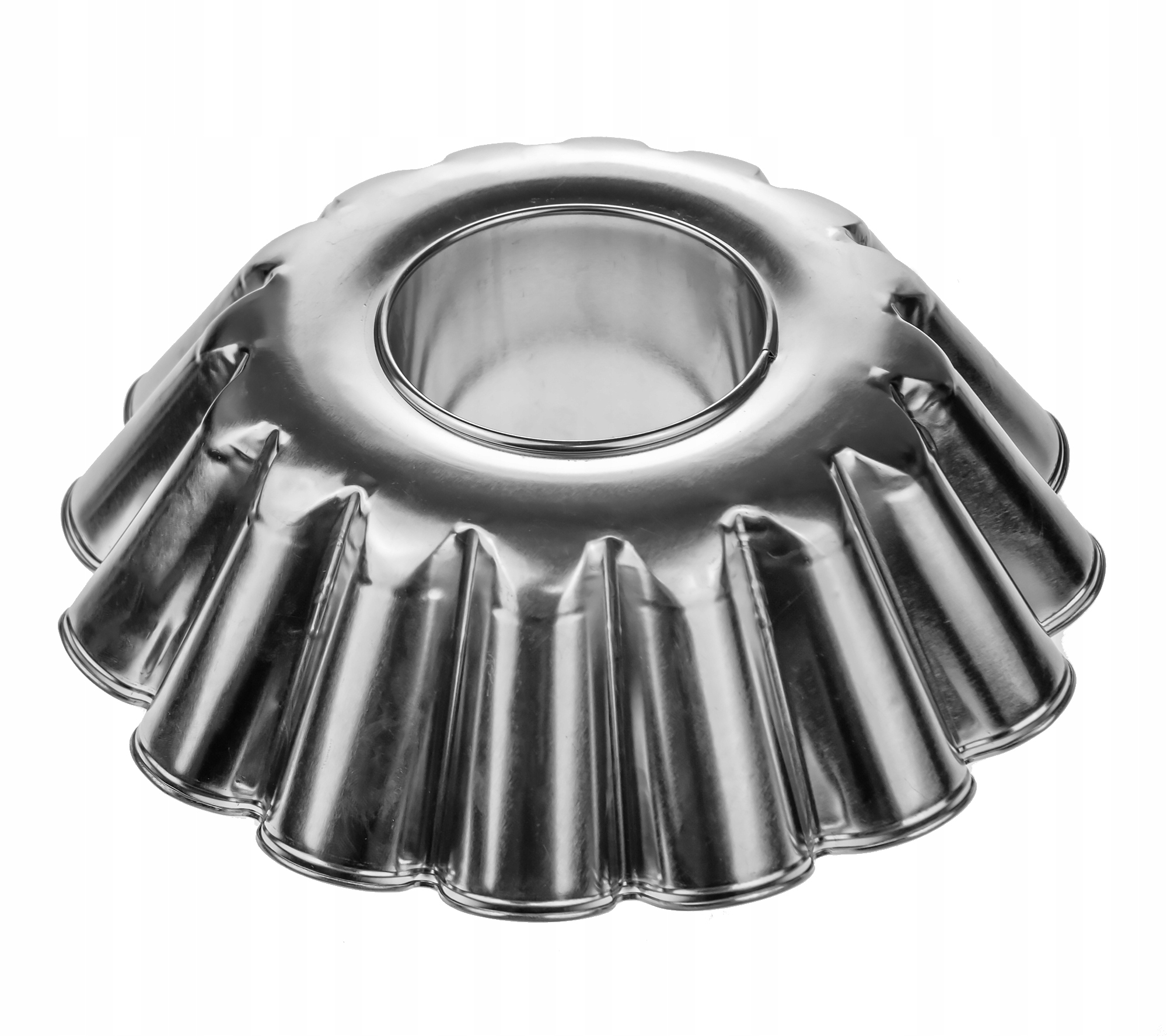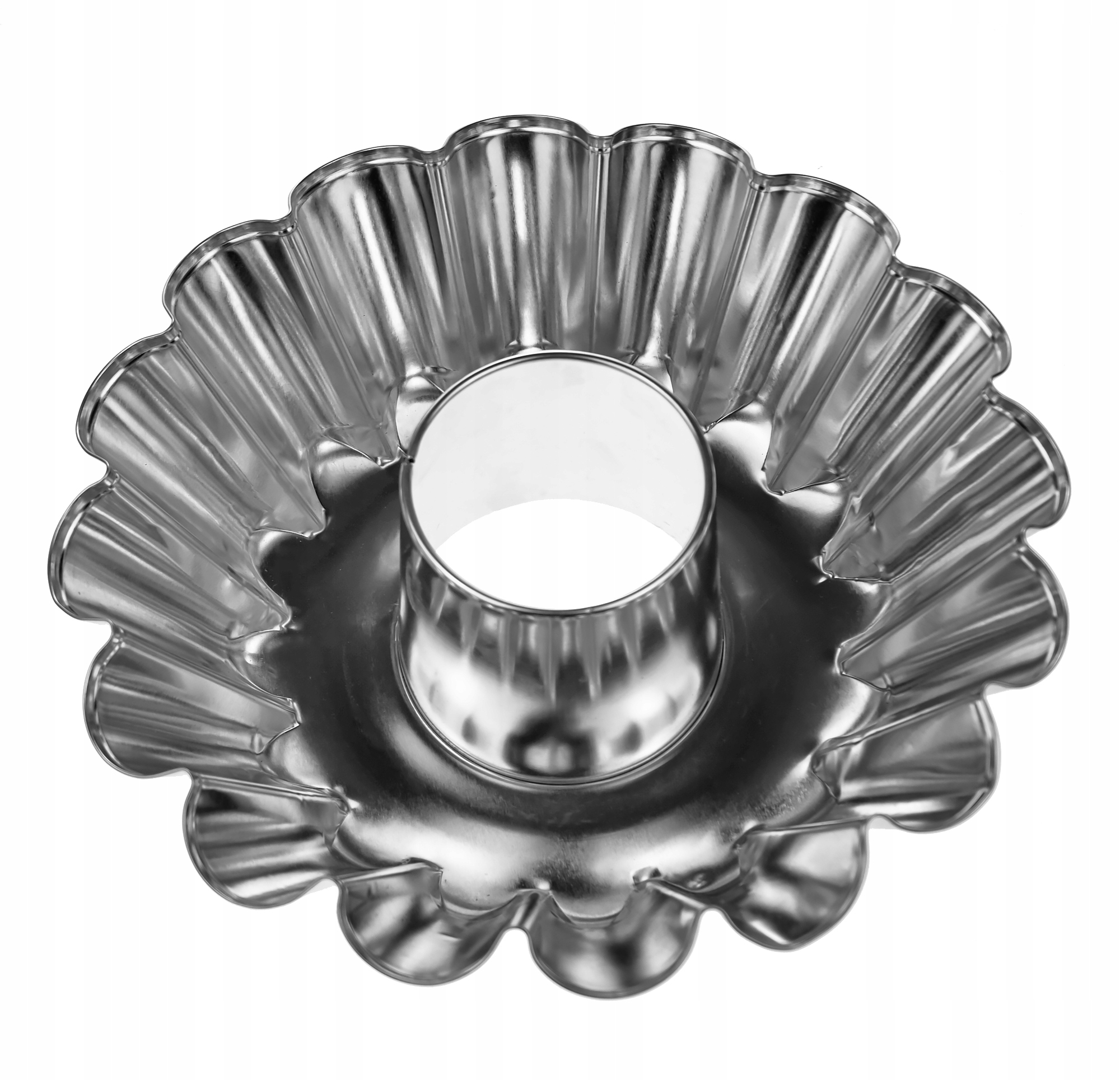 Форма для выпечки с рукавом 25 см луженая, имеет ребристый край и коническую форму с отверстием посередине.