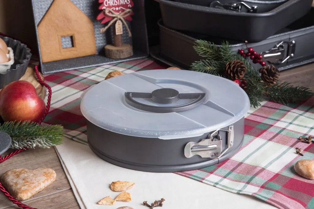 Эта форма диаметром 26 см и высотой 7,5 см – это сочетание высокого качества изготовления и функциональности. Изготовленная из стали с антипригарным покрытием, она обеспечивает равномерное выпекание, а дополнительный закрывающий зажим гарантирует, что извлечение выпечки станет детской игрой. Благодаря входящей в комплект крышке с удобной ручкой вы можете удобно транспортировать или хранить свои кулинарные творения — свежесть гарантирована!