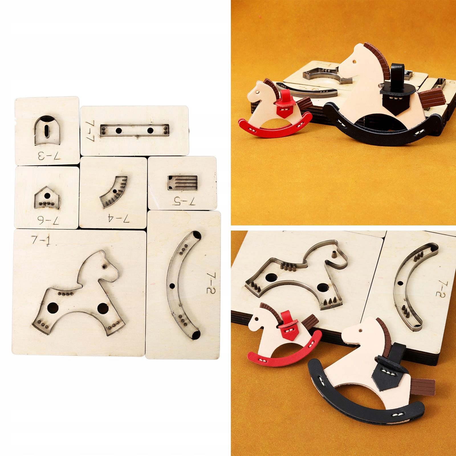 [Высококачественный материал] Кожаный штамп для резки лошади-качалки, изготовленный из деревянной основы и стального ножа, прочный, долговечный и не поддающийся деформации.