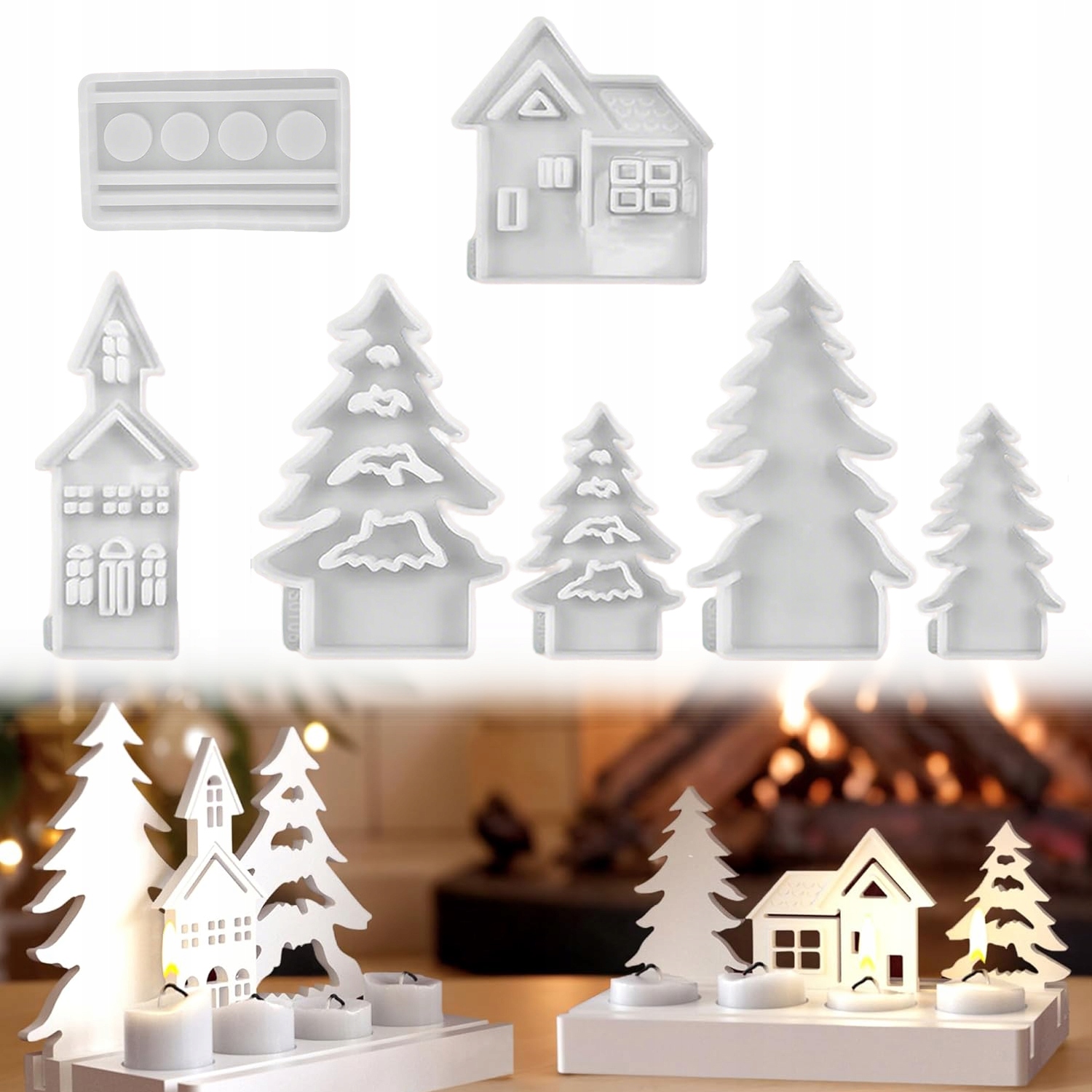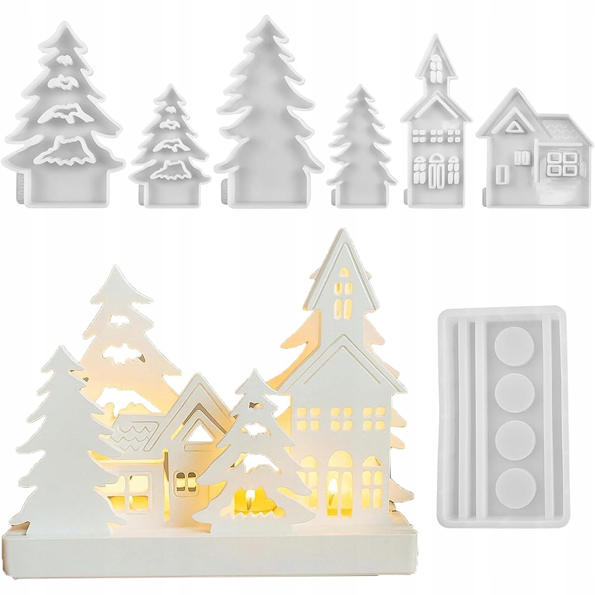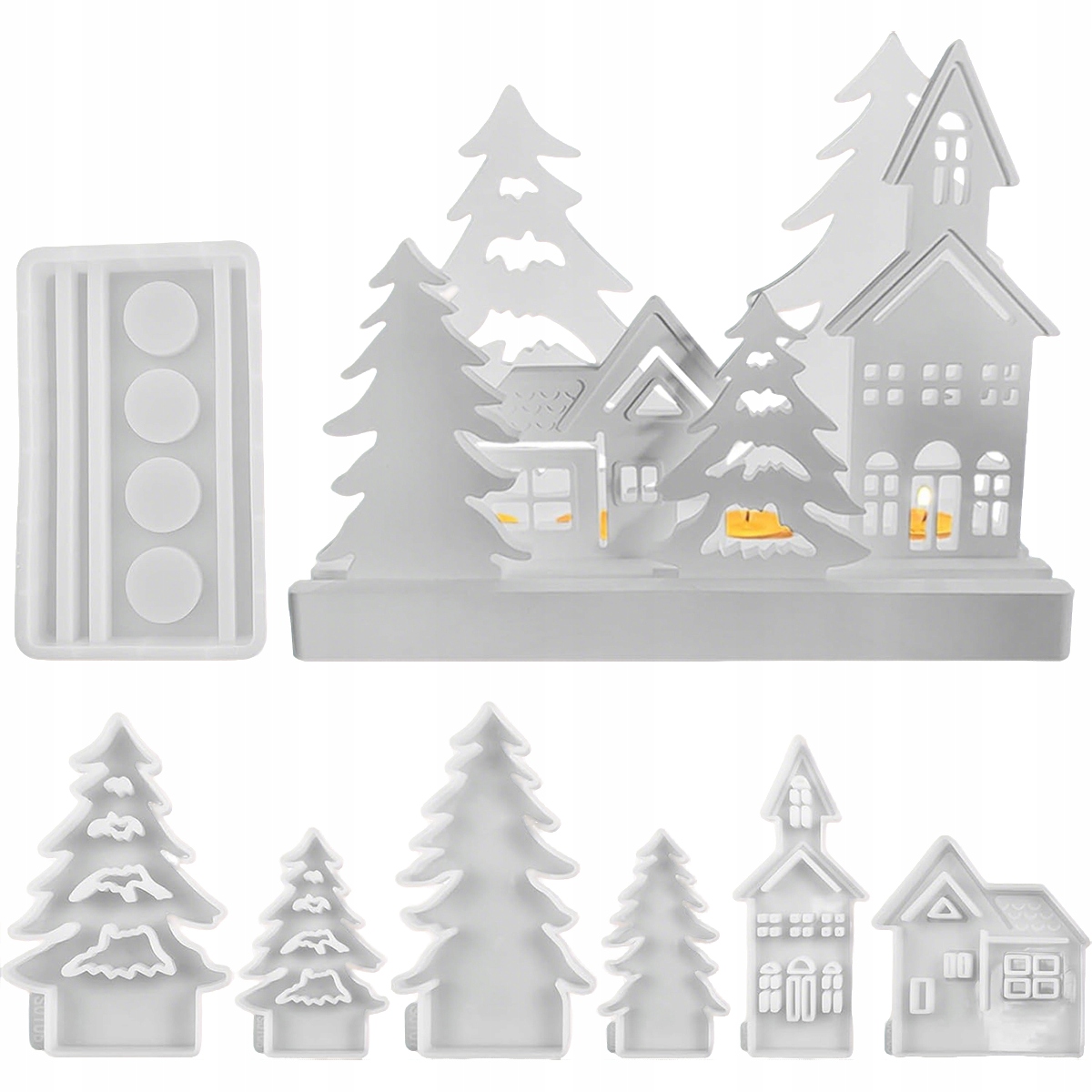✅Силиконовые формы для домиков, силиконовые формы для домиков из 7 частей с основанием, силиконовая форма для литья, форма для гипсового подсвечника, форма для литья деревьев, силиконовая пружина для поделок