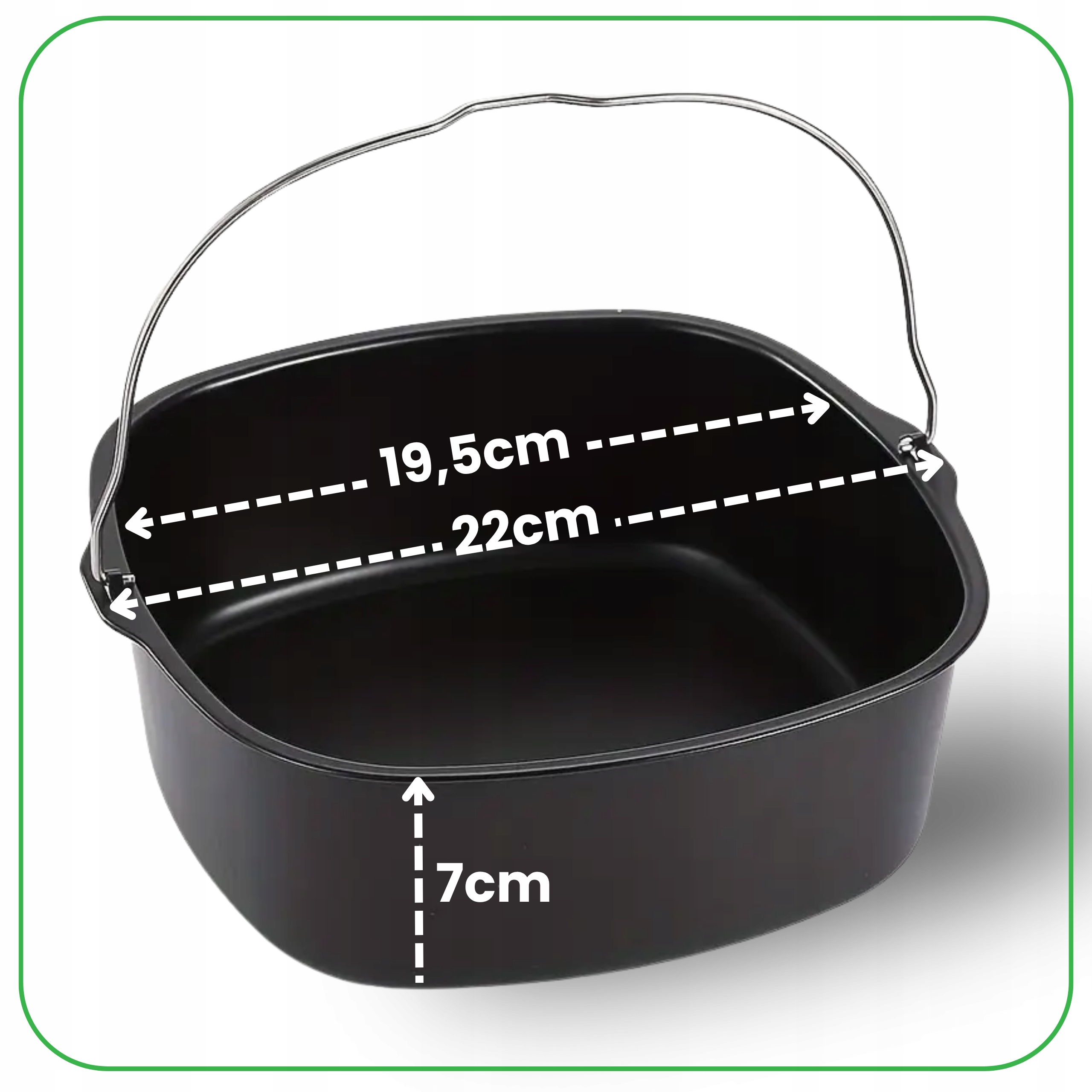 Посуда оснащена ручкой, которая облегчает извлечение горячих блюд из обезжиренной фритюрницы или духовки.
