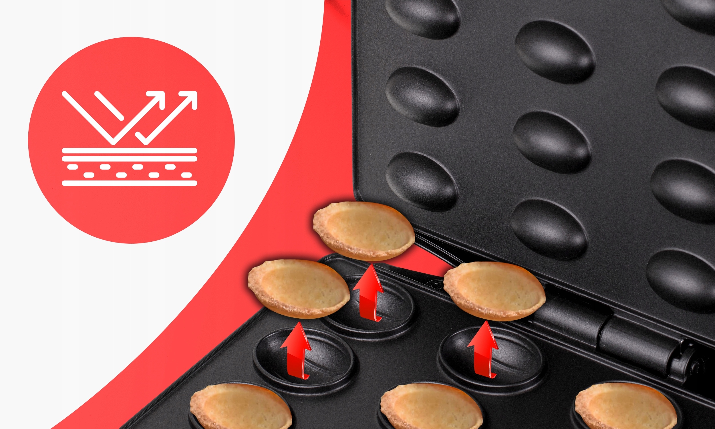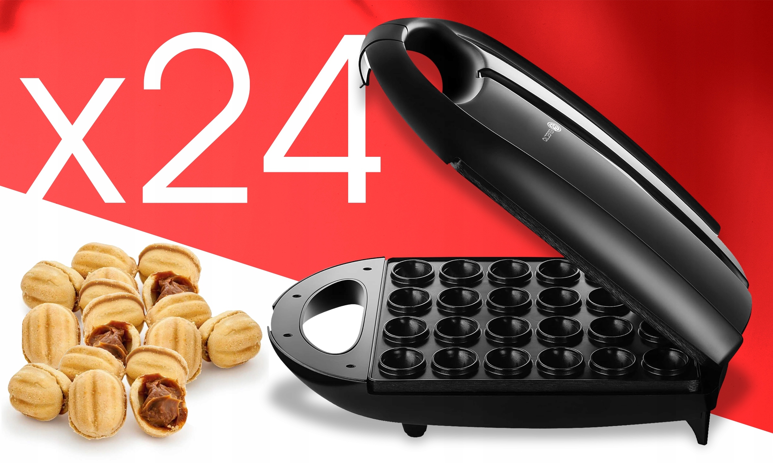 - Приготовьте до 24 половинок печенья за один цикл, создавая 12 полных орехов, готовых заполнить вашим любимым начинкой