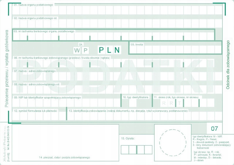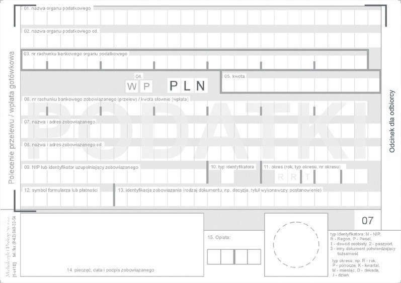 Форма Переказне доручення ПОДАТКИ MICHALCZYK 476-5M