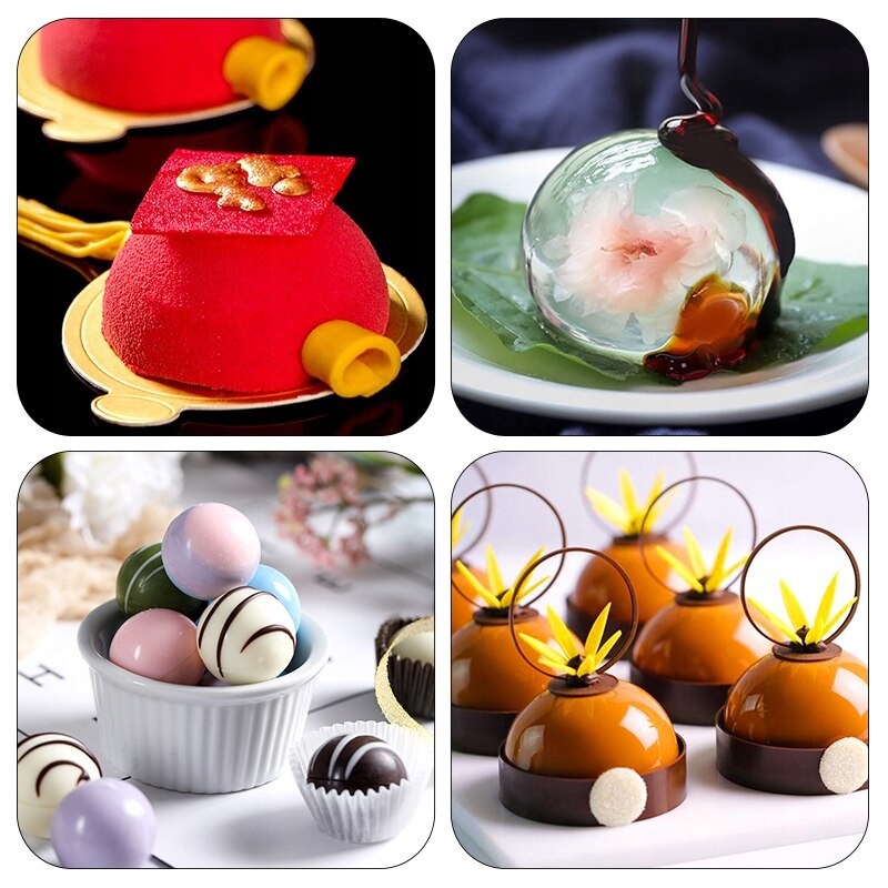 Формы имеют поля, сформированные в форме полусфер, что облегчает получение желаемого форма полусферы. Из двух полученных полусфер можно создать печенье в форме 3D шара.