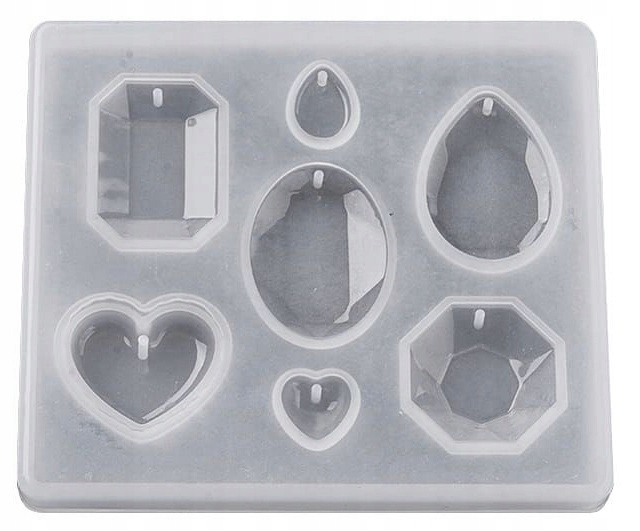 Силиконовая форма для изготовления украшений и украшений из УФ-смол и двухкомпонентных смол. Идеально подходит для подвесок. Изготовлен из бесцветного, очень прочного силикона. Форма содержит 7 различных дизайнов.