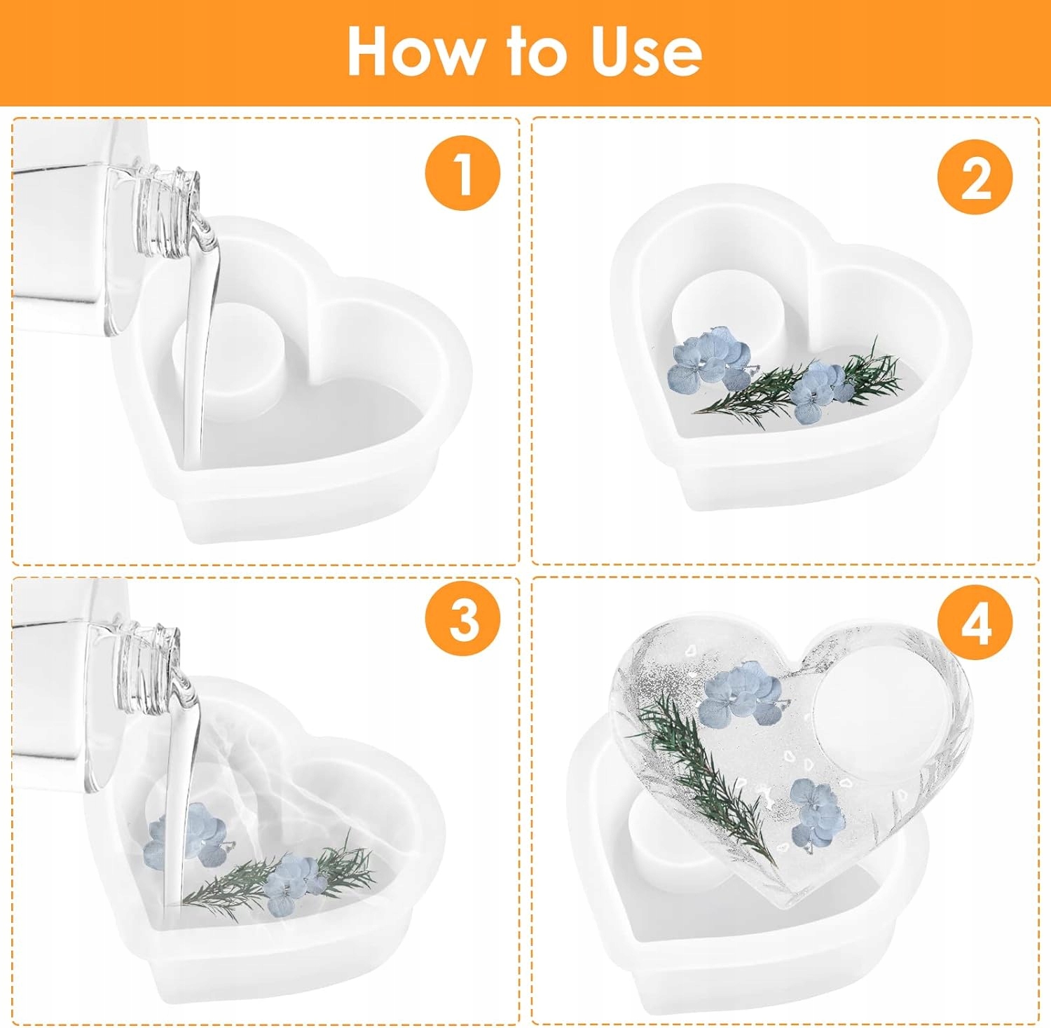 Силиконовая форма в форме сердца очень проста в использовании: просто выберите стиль подсвечника, который вам нужен, затем смешайте смолу/гипс и т. д. ком изображения, листья, сухоцветы, жемчуг, порошок золотого лука, блестки и т. д., затем вылейте в форму и подождите, пока она затвердеет, легко отделится. (Рекомендуется подождать 24 часа или дольше)