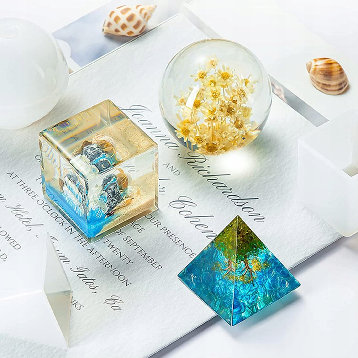 - Содержимое упаковки с силиконовой формой для отливки полки: Вы получите 5 геометрических силиконовых форм различной формы для полок, включая шар, сердце, куб и т. д., а также 5 капельниц, 5 палочек для смешивания, мерный стаканчик x 1.