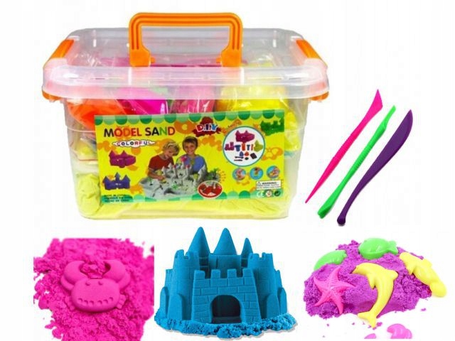 Волшебный песок совершенно безопасен – он не прилипает к рукам и не пачкается. Это также терапевтическая игрушка, которую можно использовать при тактильной гиперчувствительности или для укрепления функций рук. В набор входят: кинетический песок, 2 набора формочек, палочки и ведерко.