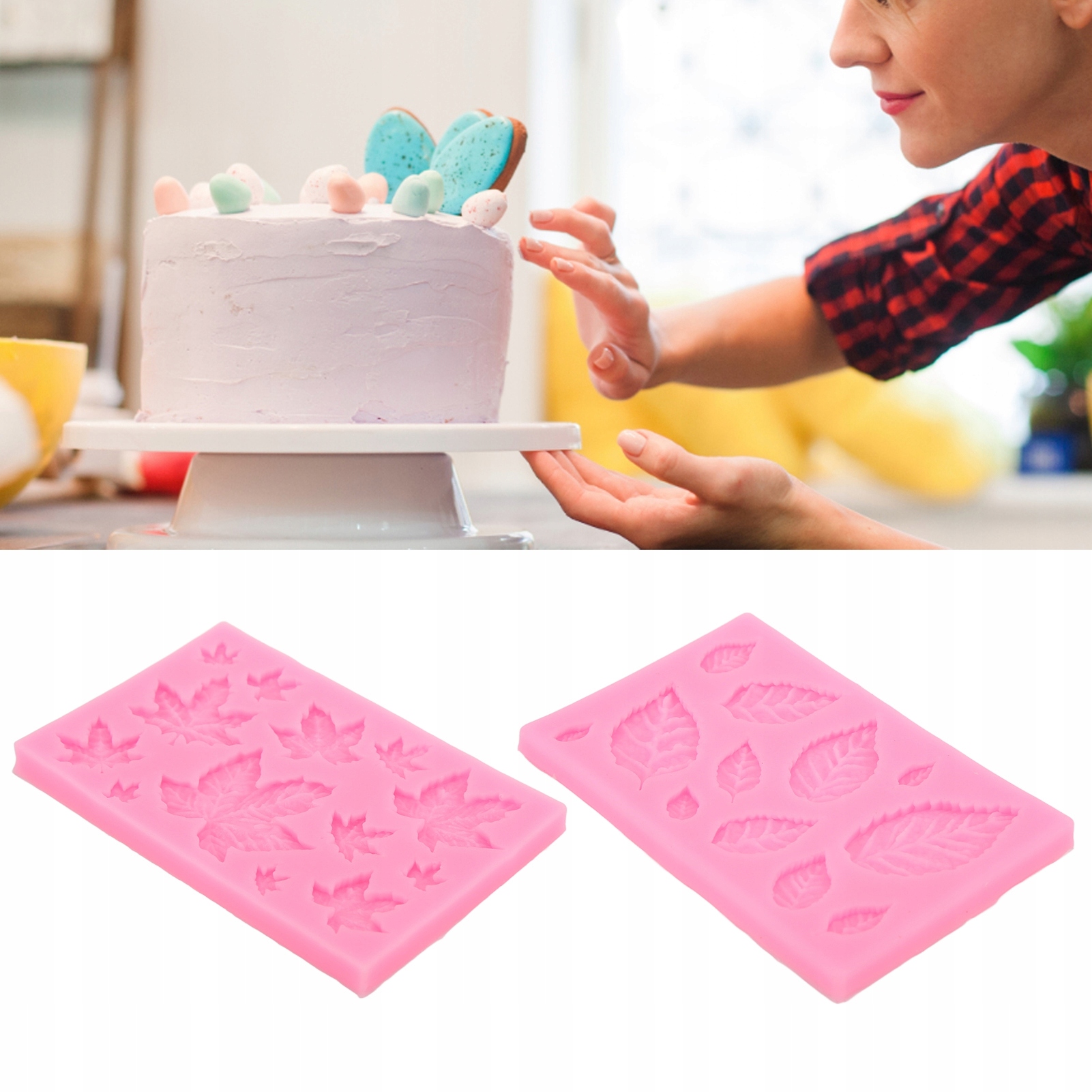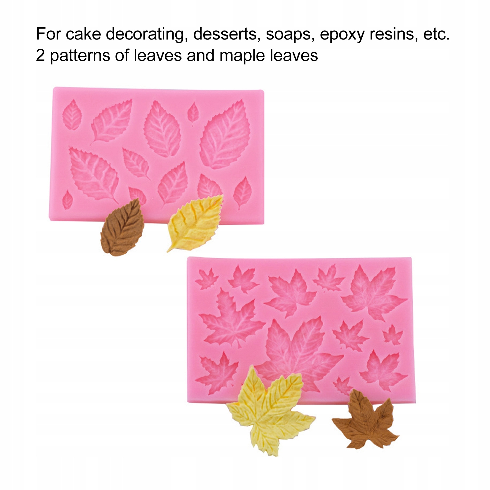 1. Силиконовый материал: силиконовая форма в форме листа имеет 2 рисунка листьев и кленовых листьев, изготовленных из силиконового материала, который является износостойким и долговечным.