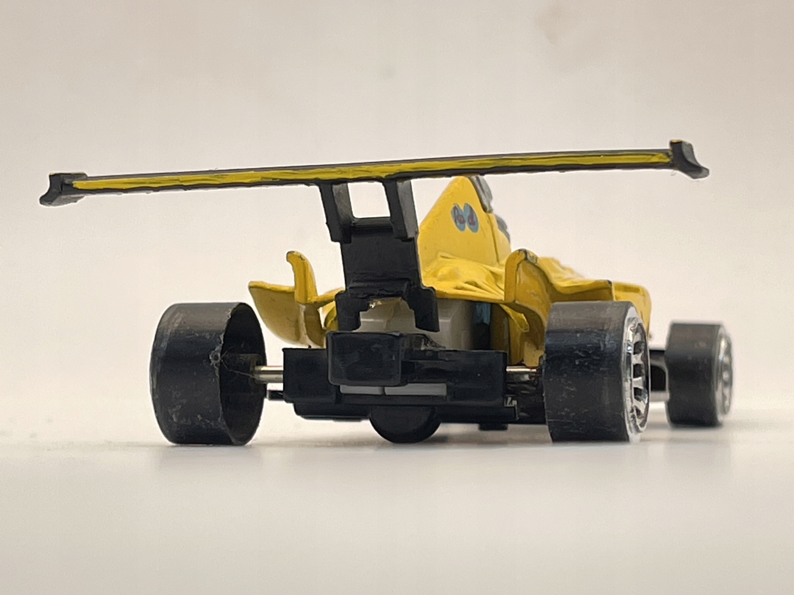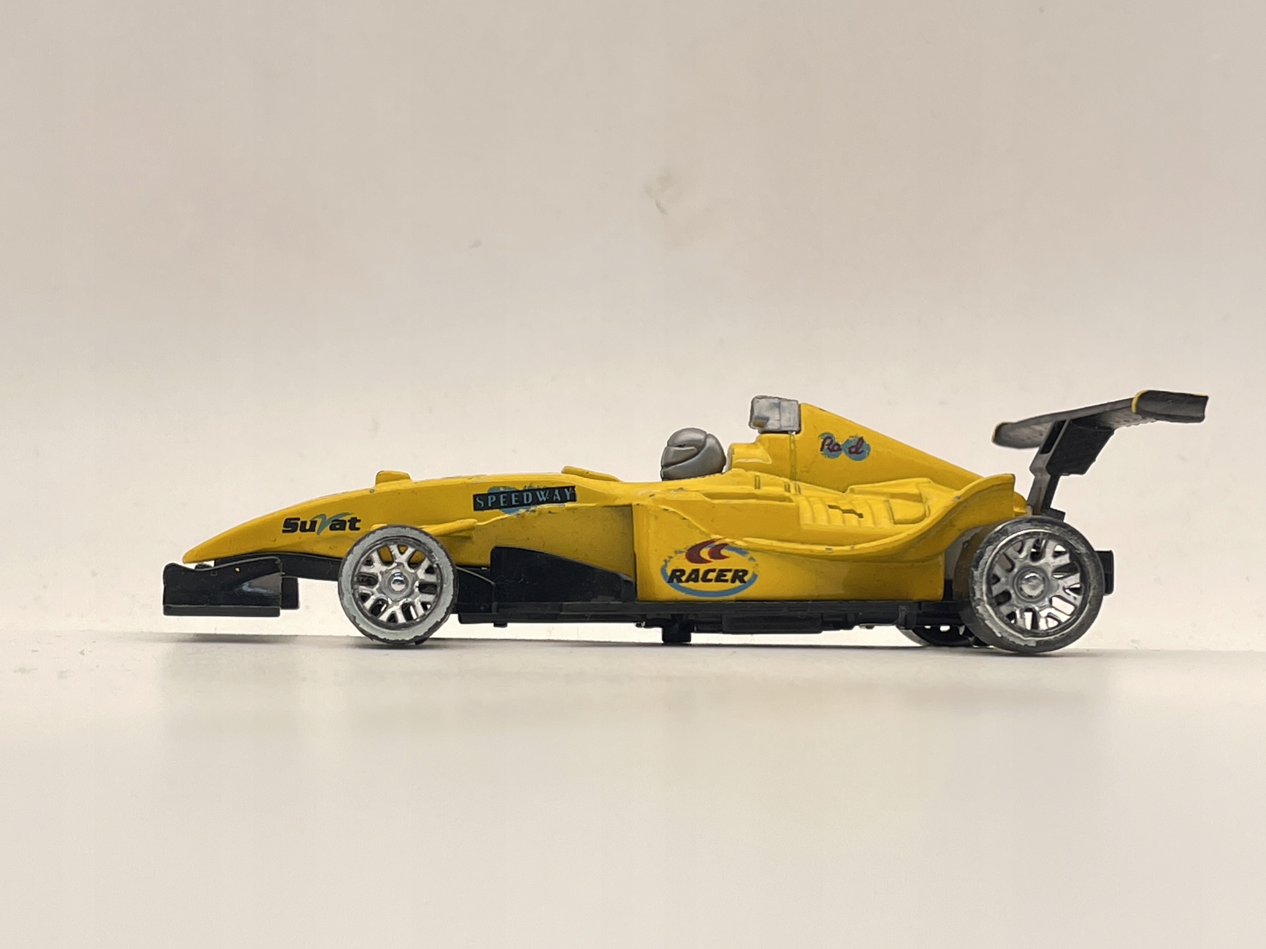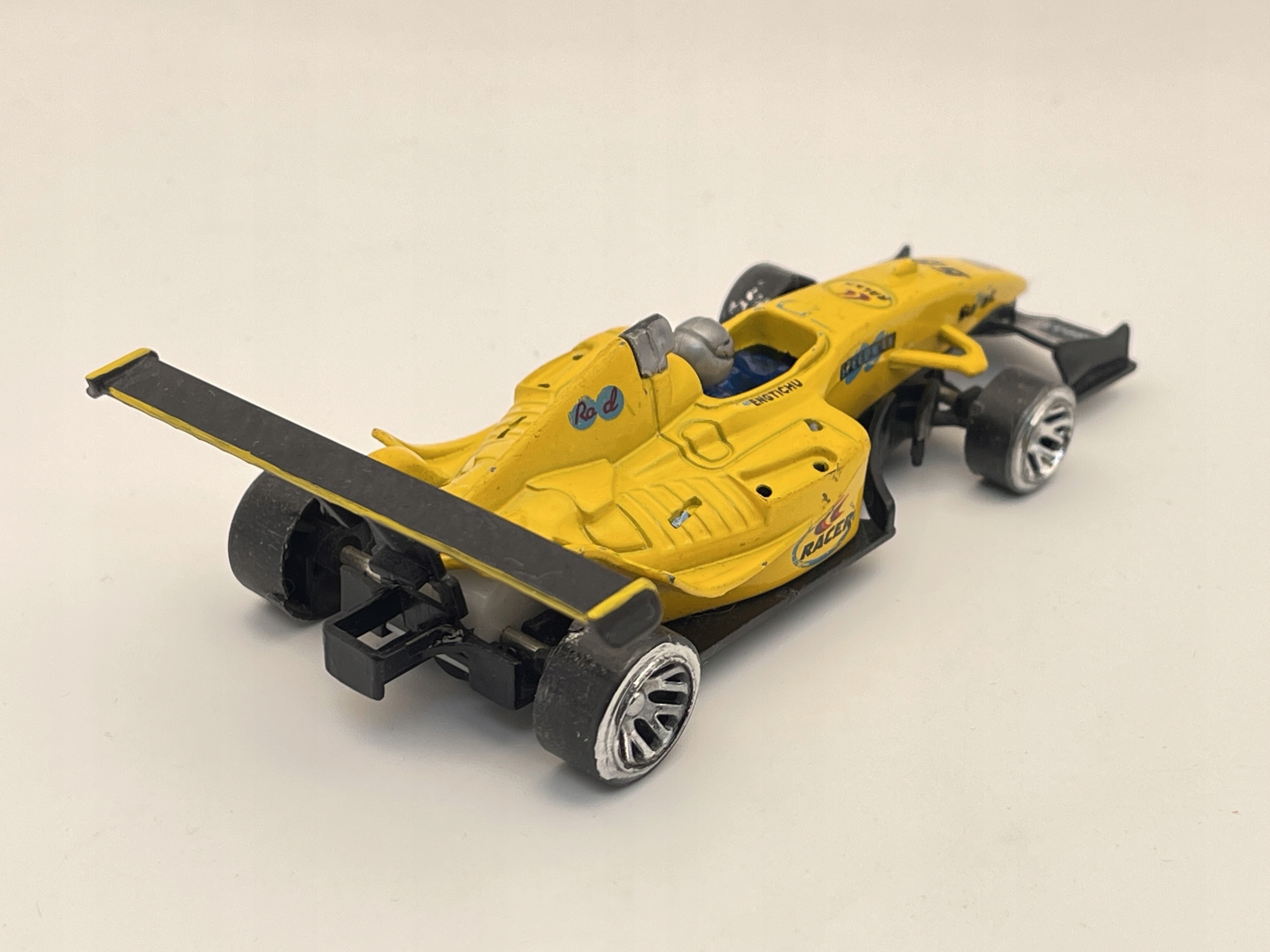 Этой весной представлена модель гоночного автомобиля Формулы 1, выполненная из металла и пластика, в масштабе 1:64. Ее характерный желтый цвет с черными элементами и принтами с номером 66 и логотипом Racer привлекают внимание коллекционеров. Модель имеет большой задний спойлер, широкие покрышки и фигурку водителя в шлеме, что добавляет ей реалистичности. Несмотря на несколько мелких царапин, модель в хорошем состоянии.