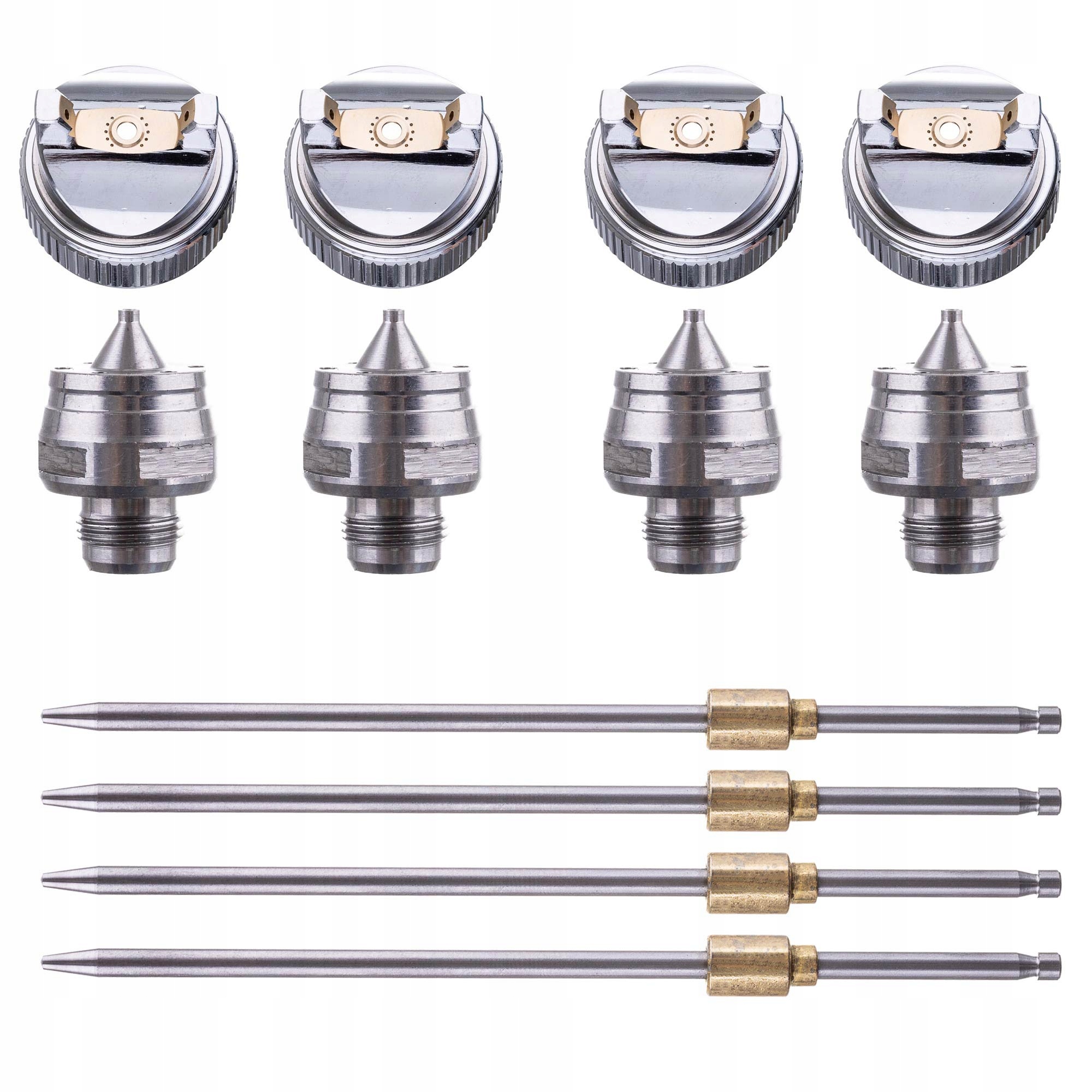 - Четыре насадки с иглами: 1,4 + 1,7 + 2,0 + 2,5 - одна установлена в пистолете, три поставляются отдельно
