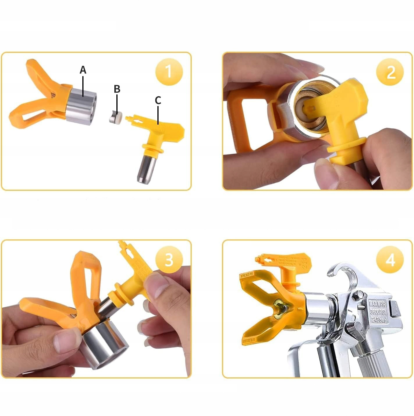 - 🔰 【Отличная совместимость】 Форсунки из вольфрамовой стали доступны в 4 моделях и поддерживают приемлемые безвоздушные распылители, которые могут потребоваться. при использовании эффективного канала ствола. Каждая модель оснащена безвоздушным соплом и уплотнением сопла и соответствует стандартам для безвоздушных распылителей.