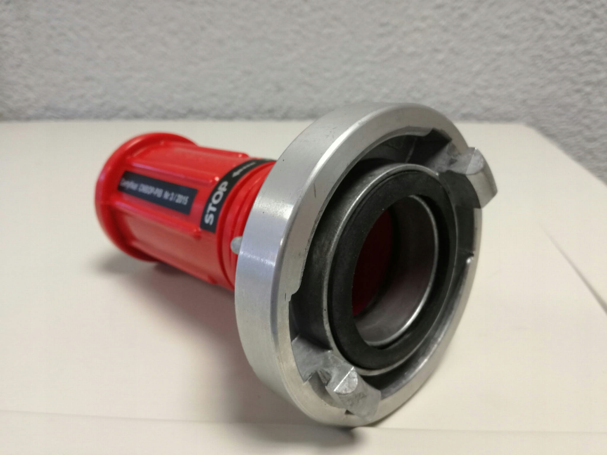 Насадка позволяет регулировать тип струи и эффективность поворотом ручки из АБС-пластика красного цвета RAL 3000.