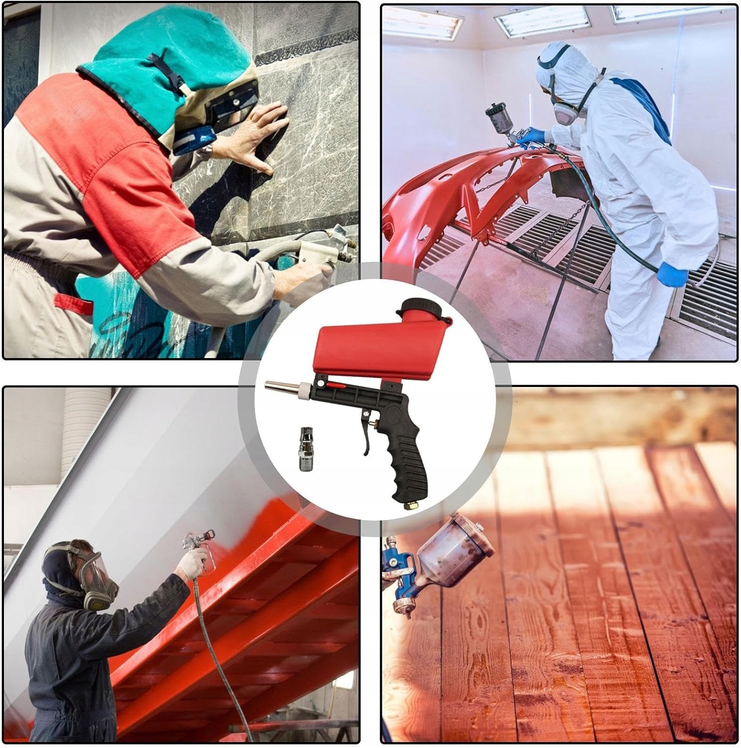 【Высокое качество】 Алюминиевый корпус с пластиковой воронкой легкий и простой в эксплуатации, а портативная конструкция обеспечивает удобство использования. Поток пескоструйной обработки можно регулировать, и пескоструйная обработка распределяется равномерно, что экономит материал.