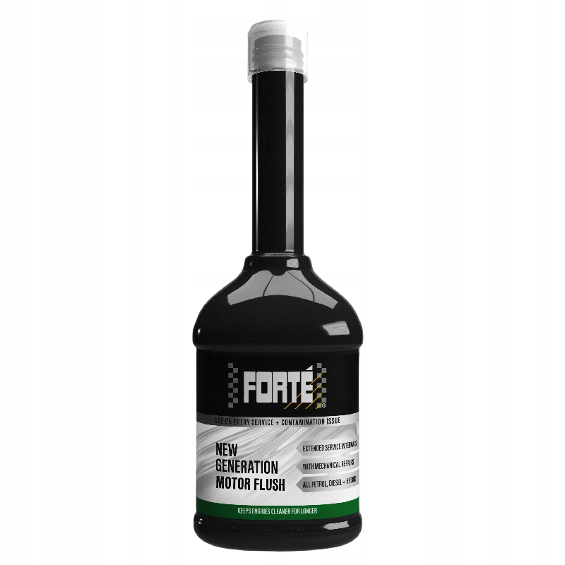 На малой скорости в течение 1 часа (каждые 5 минут скорость должна увеличились на мгновение до 3,5 тыс. об/мин), перед заменой в грязное масло залейте 2 x Forté New Generation Motor Flush (не превышайте верхний уровень масла на щупе).