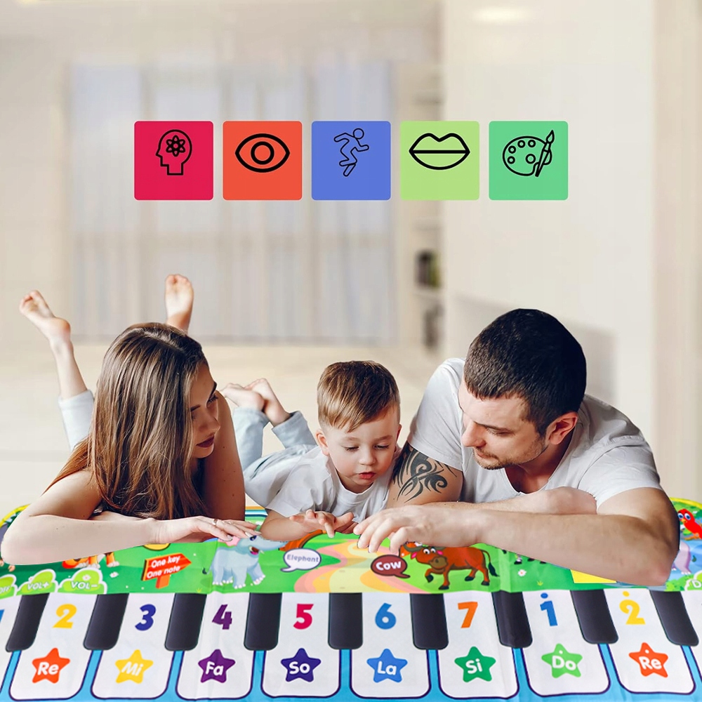 Коврик для игры на фортепиано побуждает детей естественно пинать и прикасаться, поддерживая их музыкальный талант. Это творческая игрушка, которая развивает ручной труд и воображение, и детям она наверняка понравится. Это идеальный подарок детям на Рождество или день рождения.