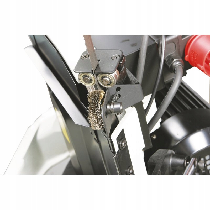 - Натяжение ленты пилы на передней стороне регулируется с помощью ручки.