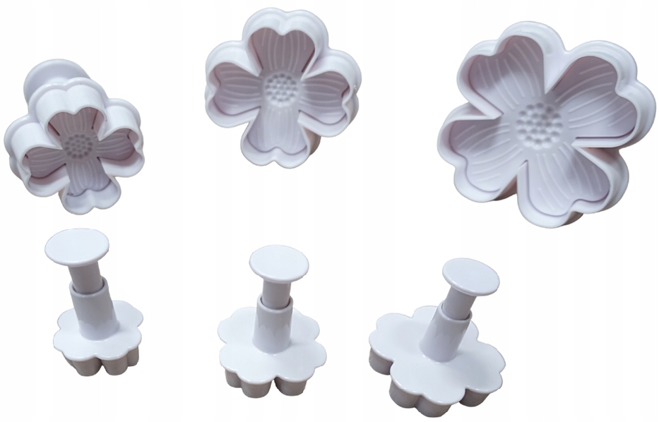 Набор из 3-х простых в использовании пластиковых резаков для вырезания глазури и марципановых украшений для украшения тортов и тортов. Они вырезали форму клевера, оставив на массе отпечаток. Раскатайте пластиковую глазурь и вырежьте листья, как если бы вы это делали обычной формочкой для печенья. Слегка нажмите на пружину, чтобы клевер отпечатался на поверхности глазури.