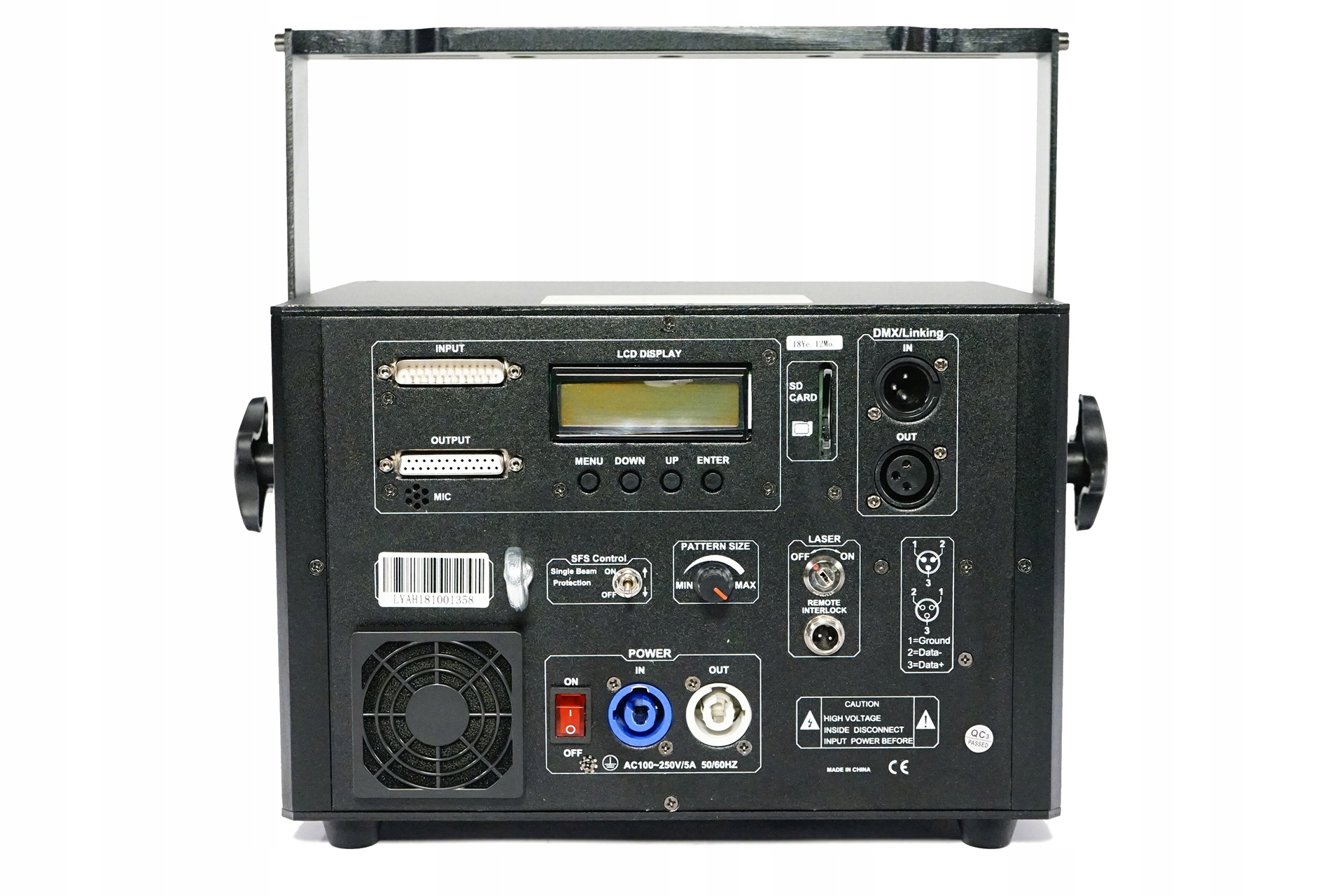 Профессиональный полностью диодный анимационный RGB-лазер, R: 400 мВт + G: 500 мВт + B: 1600 мВт, аналоговая модуляция (всего 2,5 Вт), R: 635 нм + G: 520 нм + B: 450 нм, сканер 25 тыс. PPS, ± 20° p>
