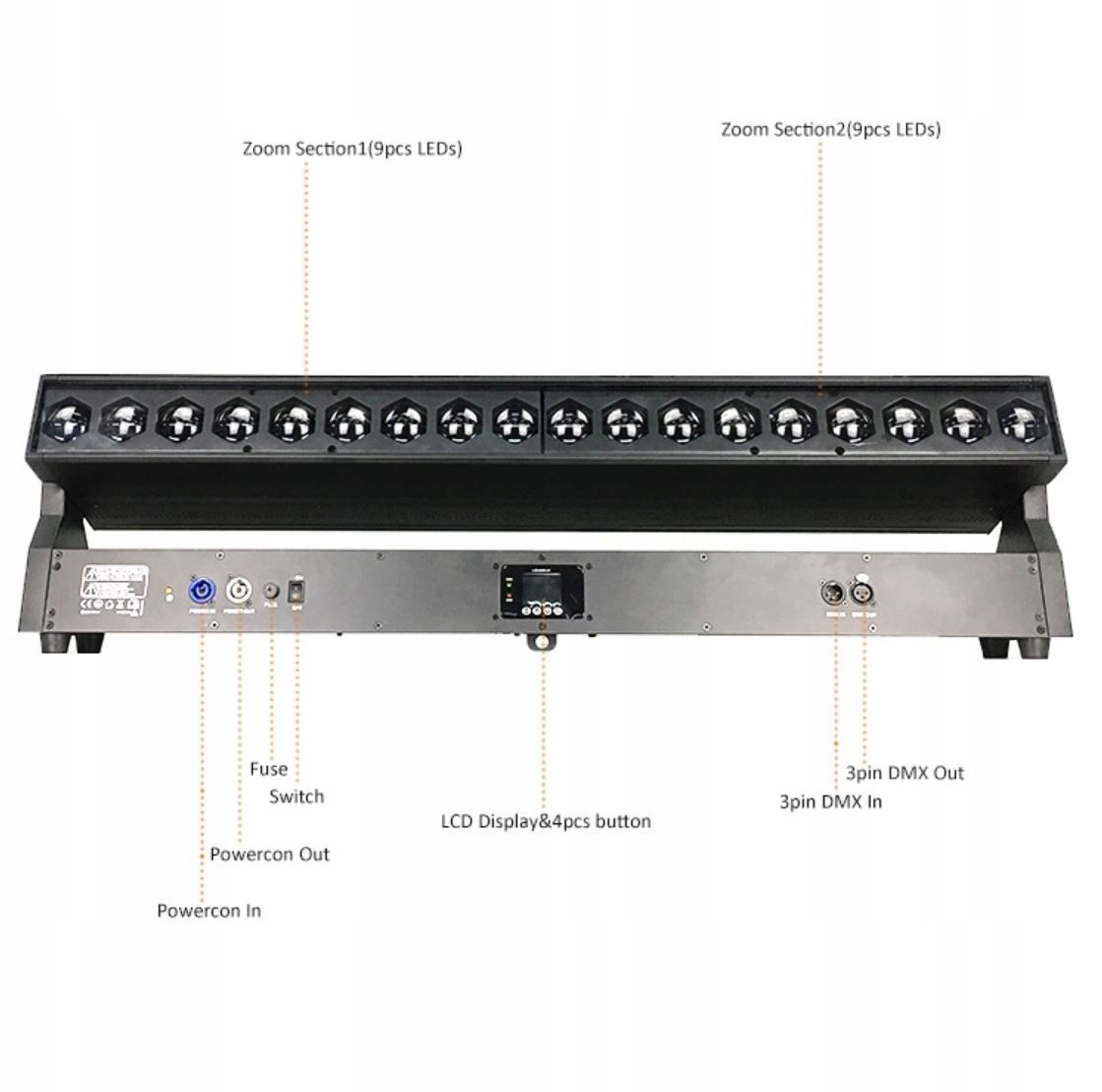 - 18 светодиодов RGBW «4-в-1» мощностью 40 Вт.