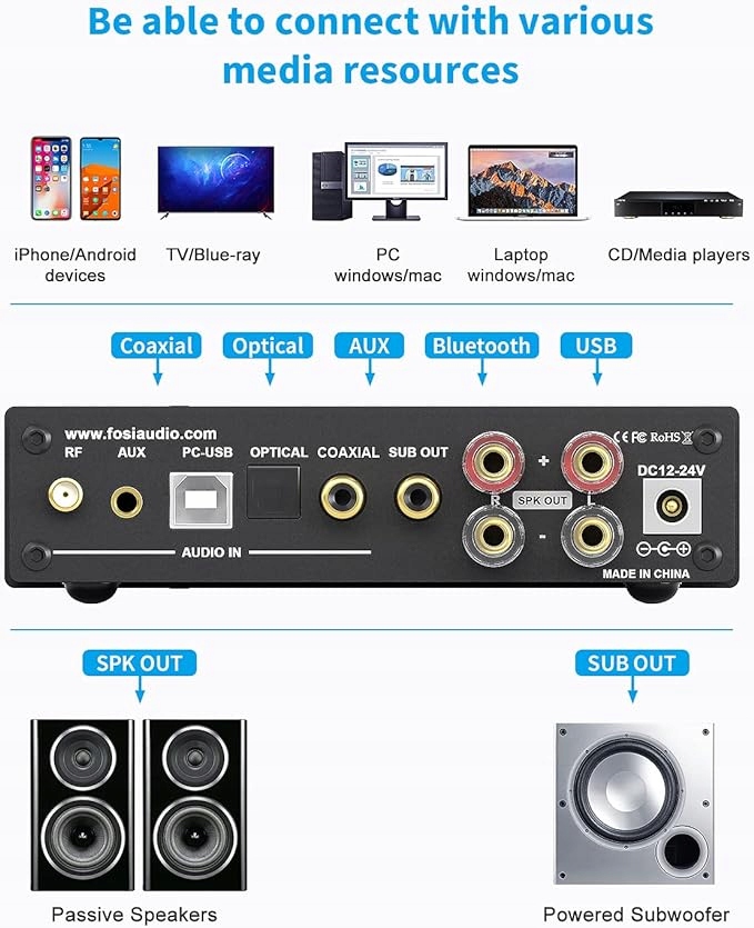 Отличный звук Усилитель мощности 50 Вт x2 класса D с выходом нижних частот сабвуфера может управлять большинством домашних динамиков, ядро TI NE5532 операционный усилитель для обеспечения качества звука.