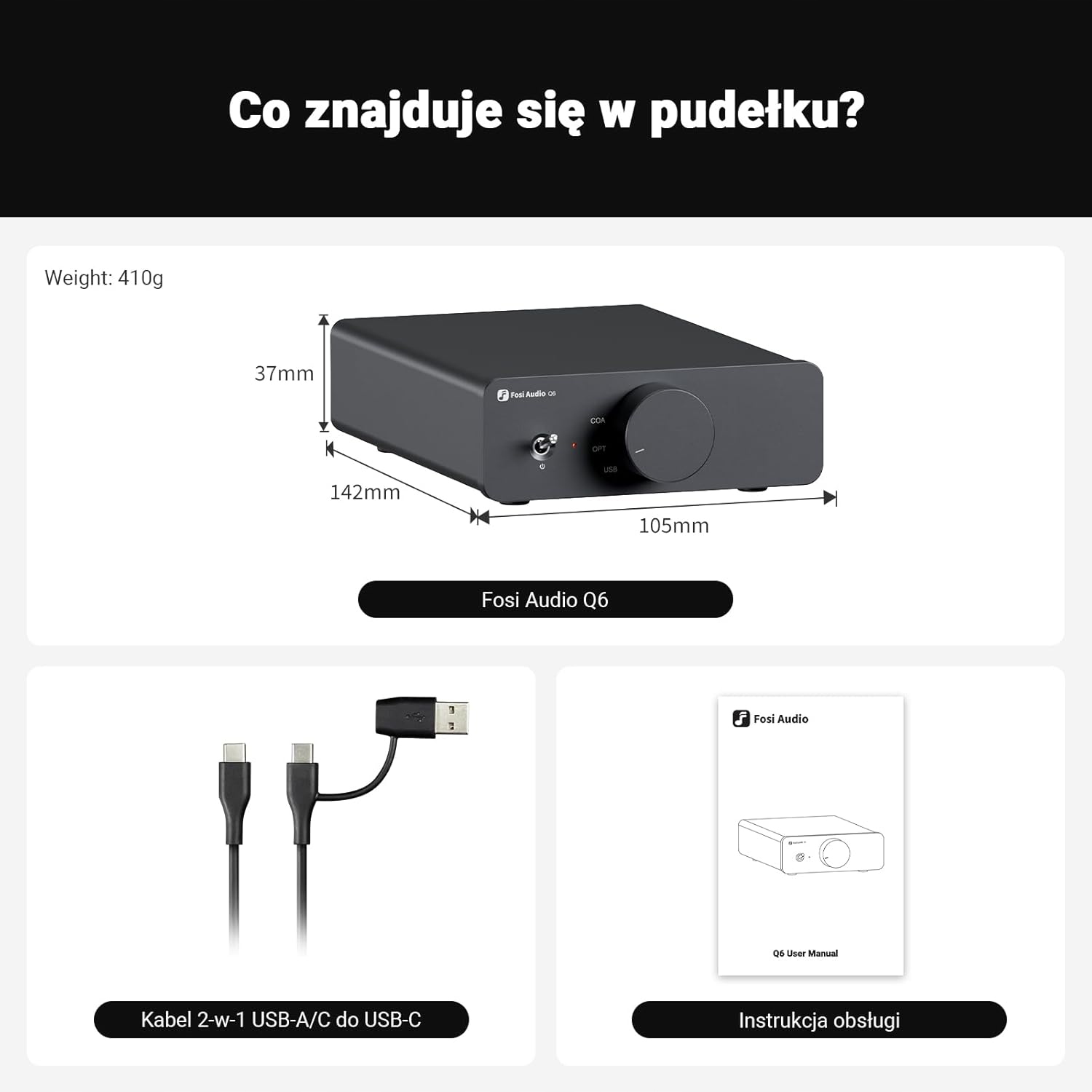Fosi Audio Q6 Mini Desktop DAC USB C OPT COA RCA Сабвуфер для усилителей
