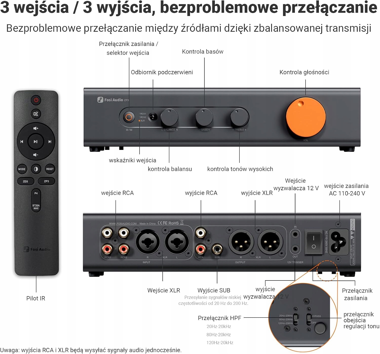 Предусилитель Fosi Audio ZP3, 3 входа, 3 выхода, балансный, 2.1 HPF