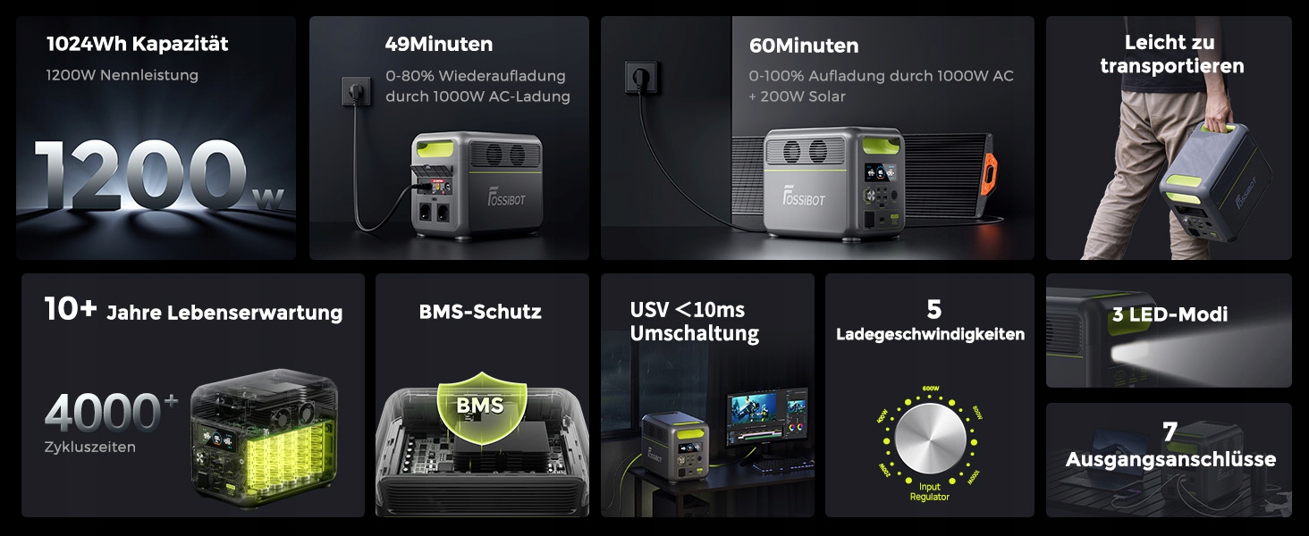 Fossibot přenosná elektrárna1200W 1024Wh F1200 POWER station