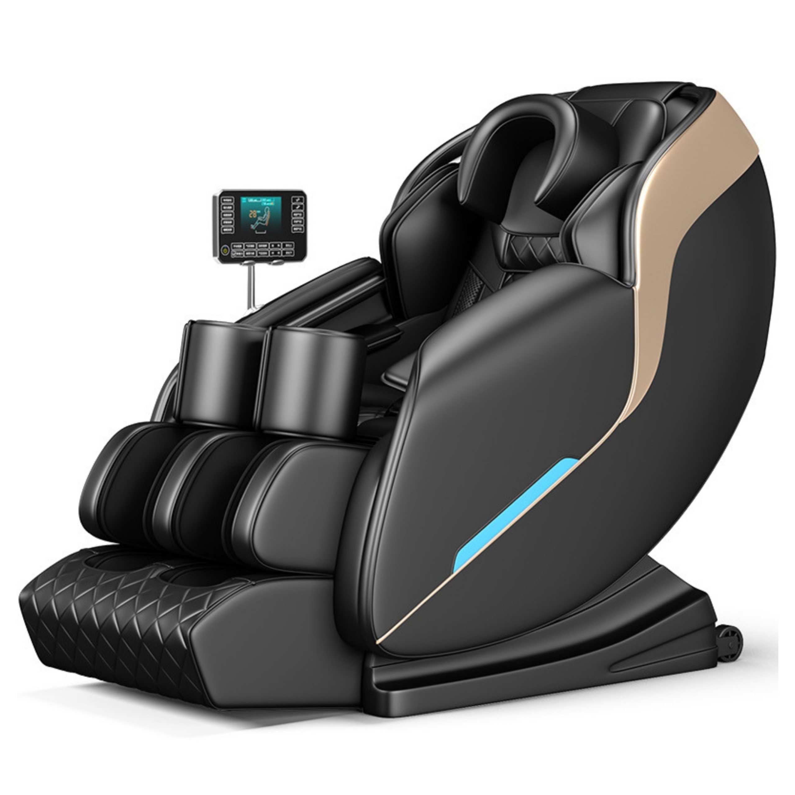 ЖК-дисплей, встроенный в массажное кресло, позволяет устанавливать скорость, силу массажа и зону проведения массажа.