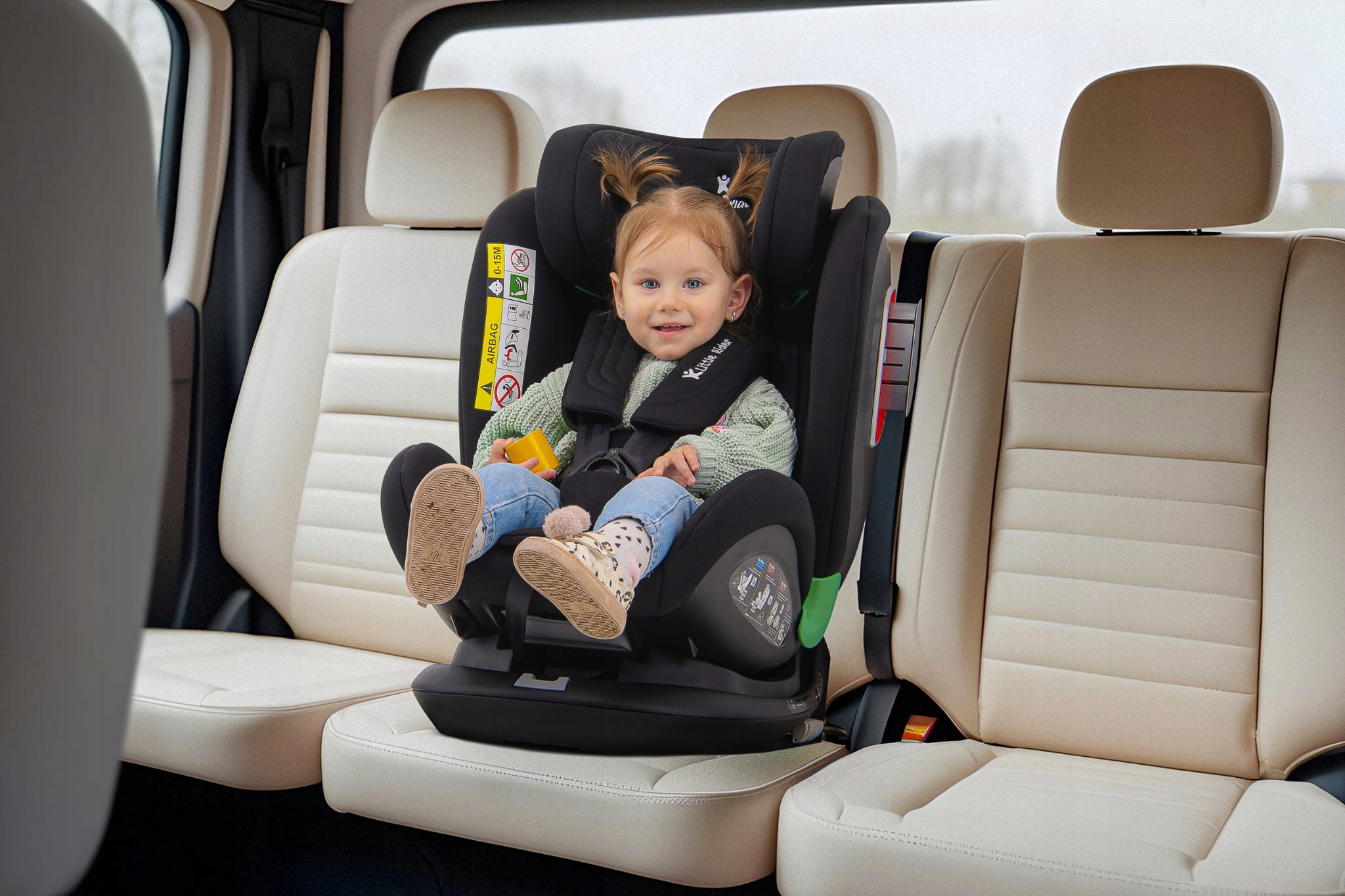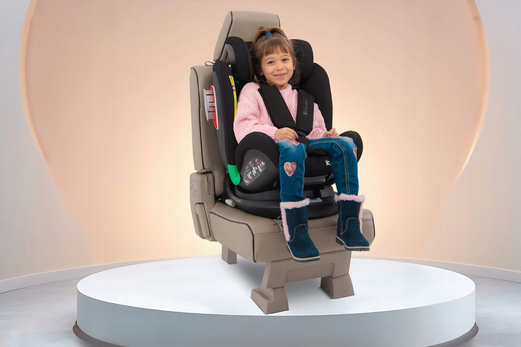 Сертифицированное автокресло LITTLE RIDER, соответствующее последнему утверждению i-Size, для детей ростом от 40 до 150 см. Сиденье оснащено поворотным на 360° сиденьем и креплением ISOFIX + Top Tether.