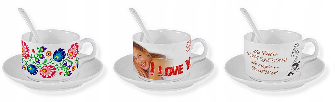 фото чашка з відбитком, ложка та блюдце
