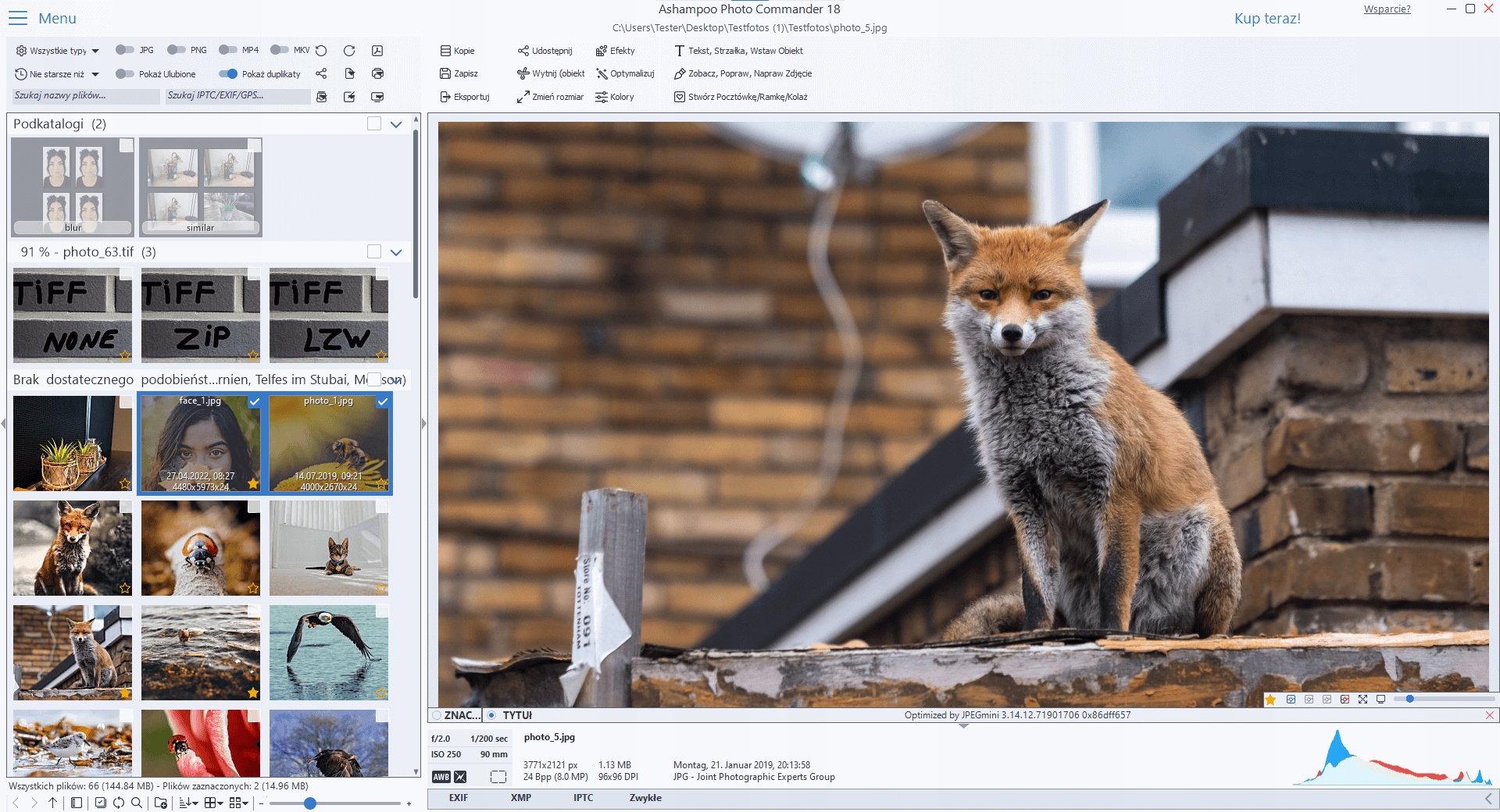 Ashampoo Photo Commander действительно удобен! Он сканирует вашу библиотеку фотографий и помогает добавлять фильтры в зависимости от названия фотографии, данных EXIF/IPTC или комментариев. Вы ищете идеальное решение, которое к тому же просто в использовании? Вот оно. Вы также можете самостоятельно добавлять метаданные к своим фотографиям, чтобы не потерять ценные для вас снимки!