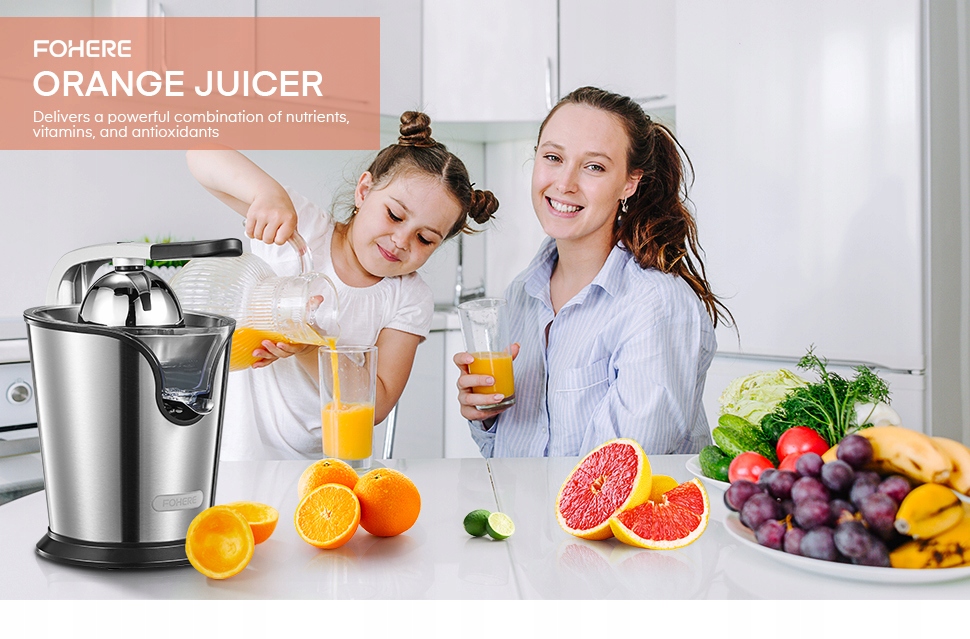fohere gs-4034 . Электрическая цитрусовая соковыжималка, электрическая соковыжималка для соков и апельсин с профессиональным рычагом рычага, тихий двигатель 160 Вт, не содержит BPA, 2 сжимания конусов для грейпфрута,