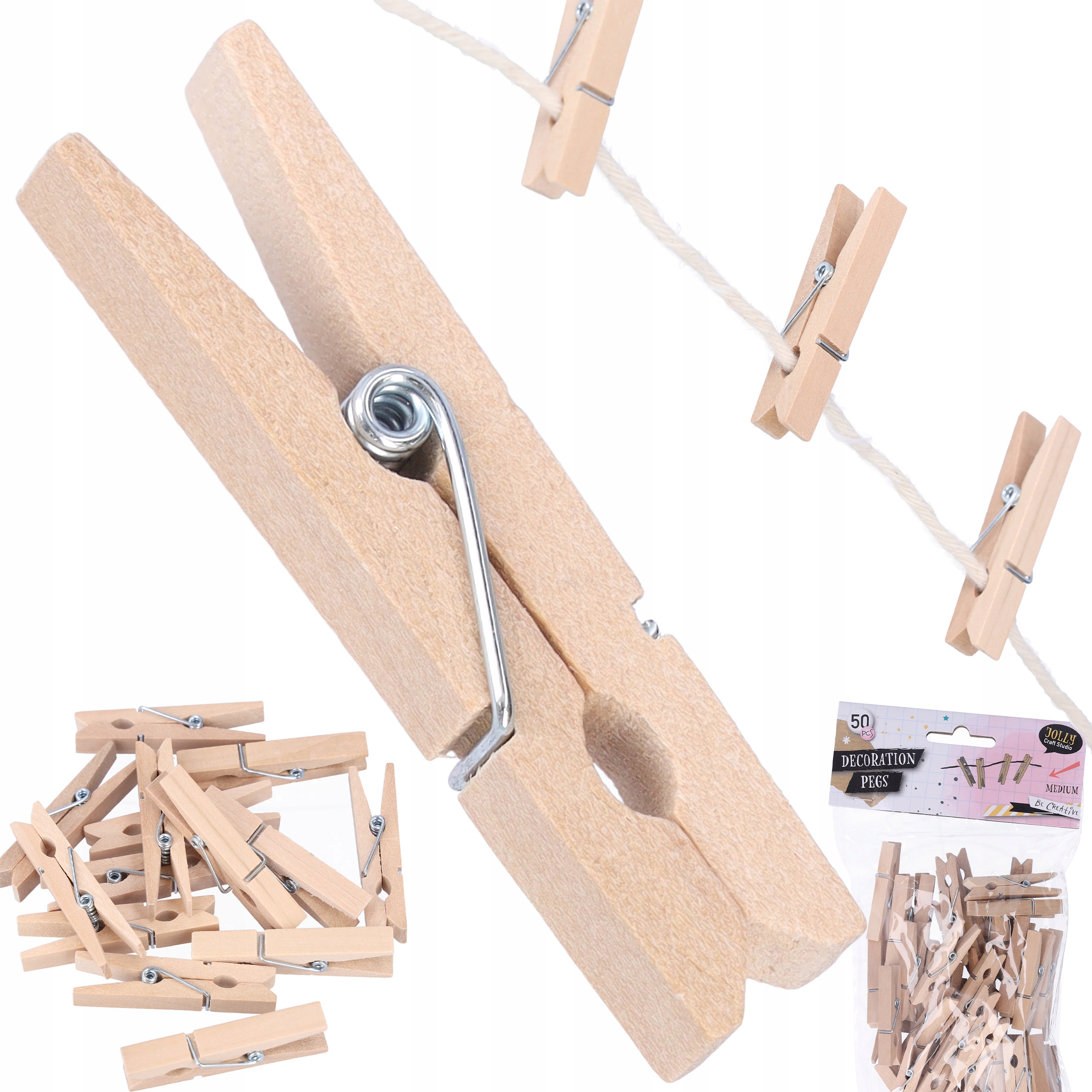 ✅ Набор из 50 универсальных прищепок с застежками длиной 4,5 см из бамбукового дерева.