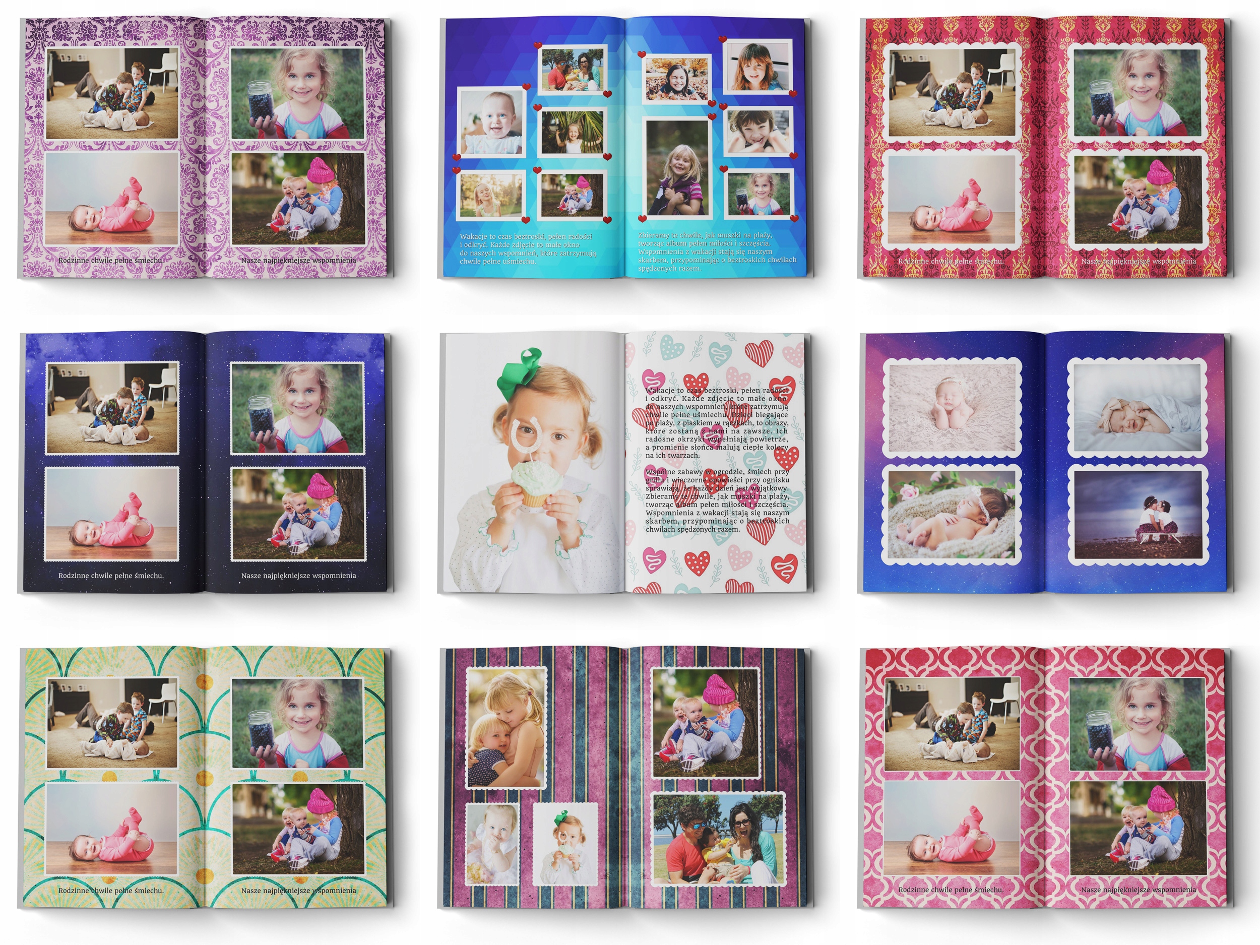 ★ В редакторе вы загружаете фотографии с компьютера или телефона, установите их на страницах, добавьте заголовок и текст на страницах. Затем вы можете проверить, как ваша фотобукка будет выглядеть в разных цветовых версиях, с разными фоном и шрифтами.