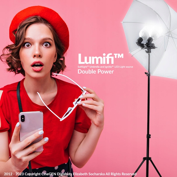 Lumifi™ — новое поколение студийных ламп непрерывного света на основе светодиодного источника светаIgnitix™ и диффузионных зонтовSoftligt™. Лампы серии Lumifi обеспечивают яркий естественный свет температурой 5500К, что предотвращает искажения цвета при фото- и видеосъемке. Диффузионный зонт смягчает контрасты и сглаживает тени. Идеально подходит для портретной, модной и предметной фотографии. И все это при превосходной энергоэффективности.