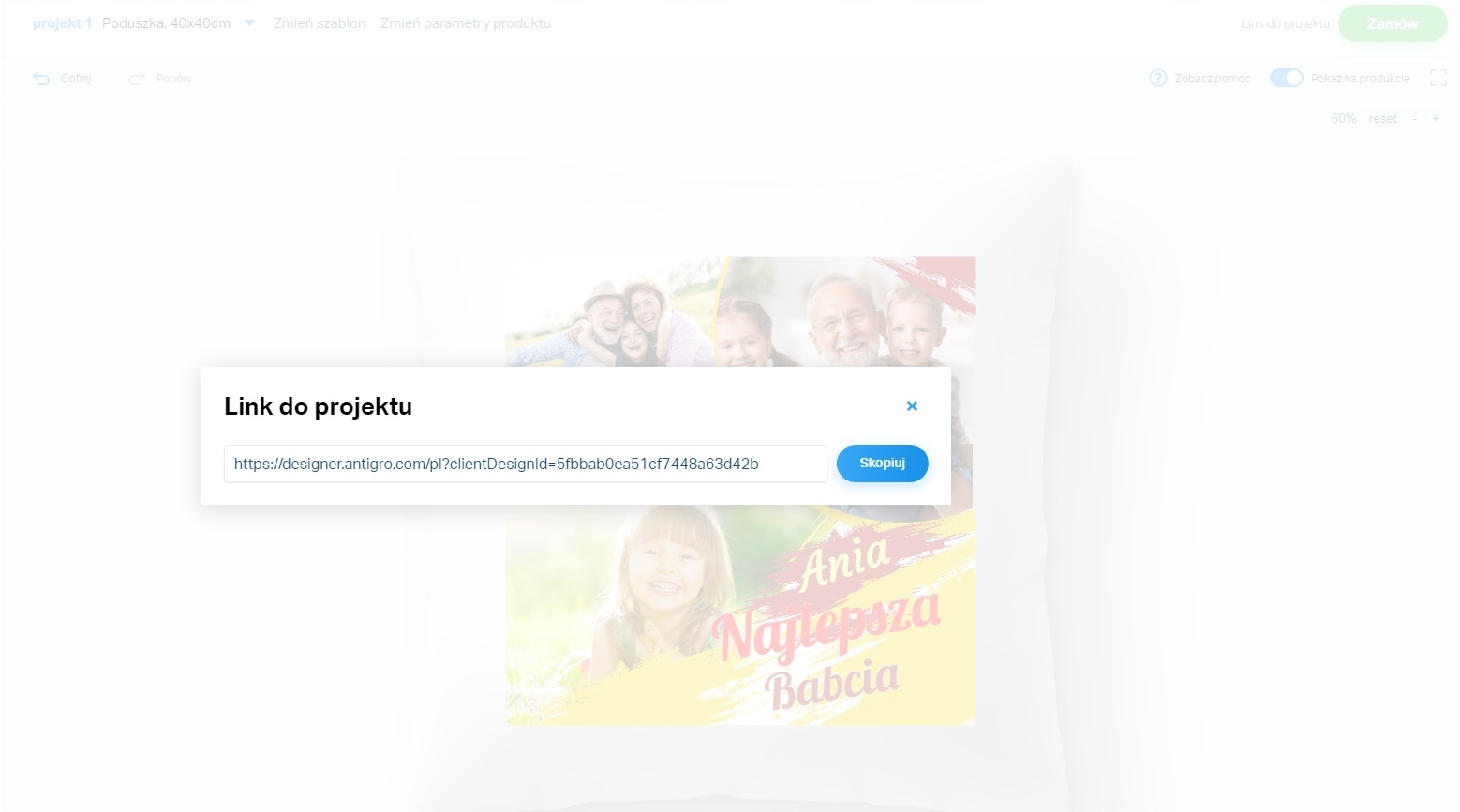 Хотите, чтобы кто-то из ваших близких увидел подготовленные вами дизайны перед их покупкой? Воспользуйтесь опцией «Ссылка на проект» и скопируйте полученный адрес сайта.