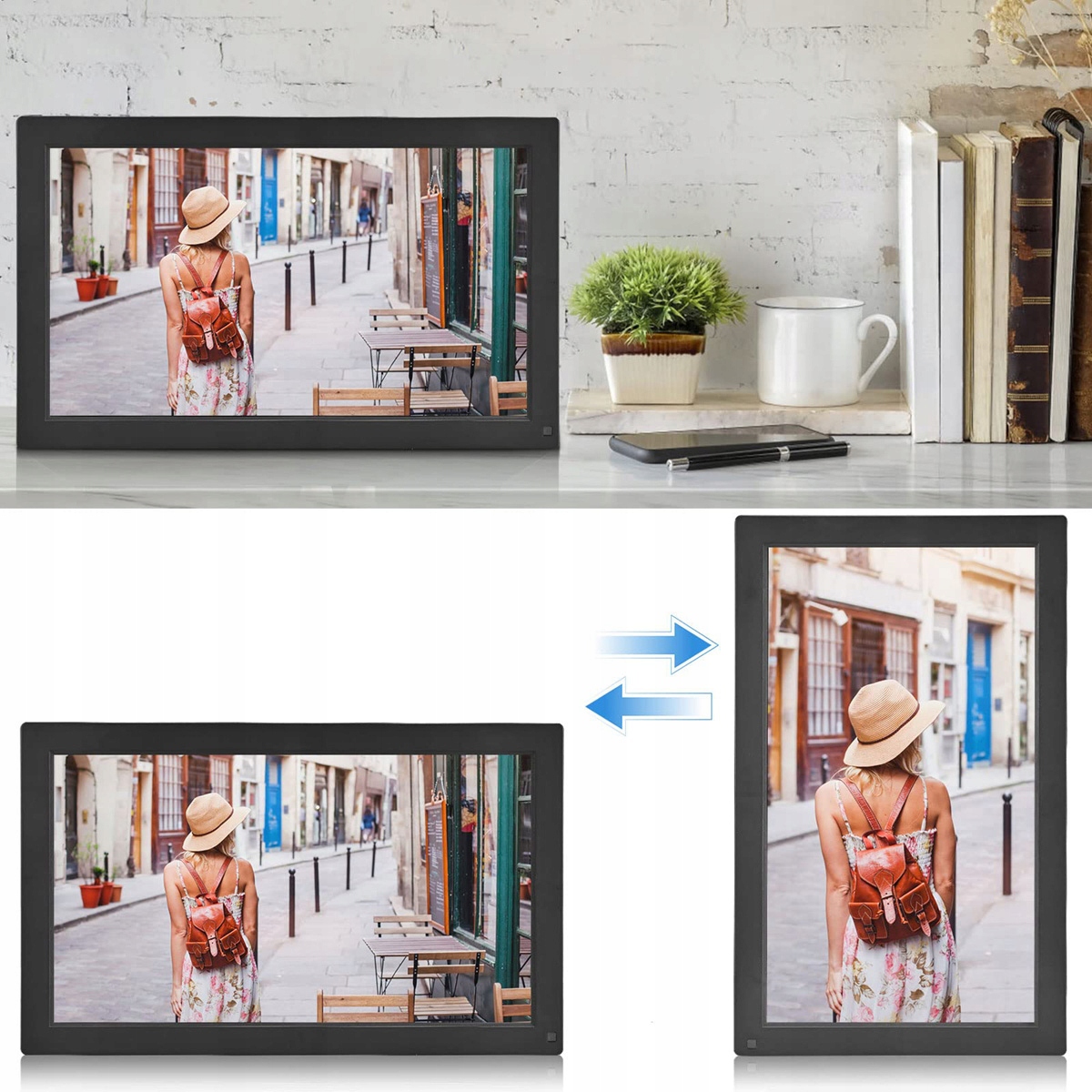Фото кадра может автоматически повернуть фотографии, чтобы регулировать направление, что позволяет размещать раму Wi-Fi в вертикальный или горизонтальный режим или на стену. Встроенная память 32 ГБ обеспечивает огромную емкость памяти (около 80 000 300 КБ/ПК). Он также поддерживает максимум 128 ГБ карт Micro SD для управления файлами.