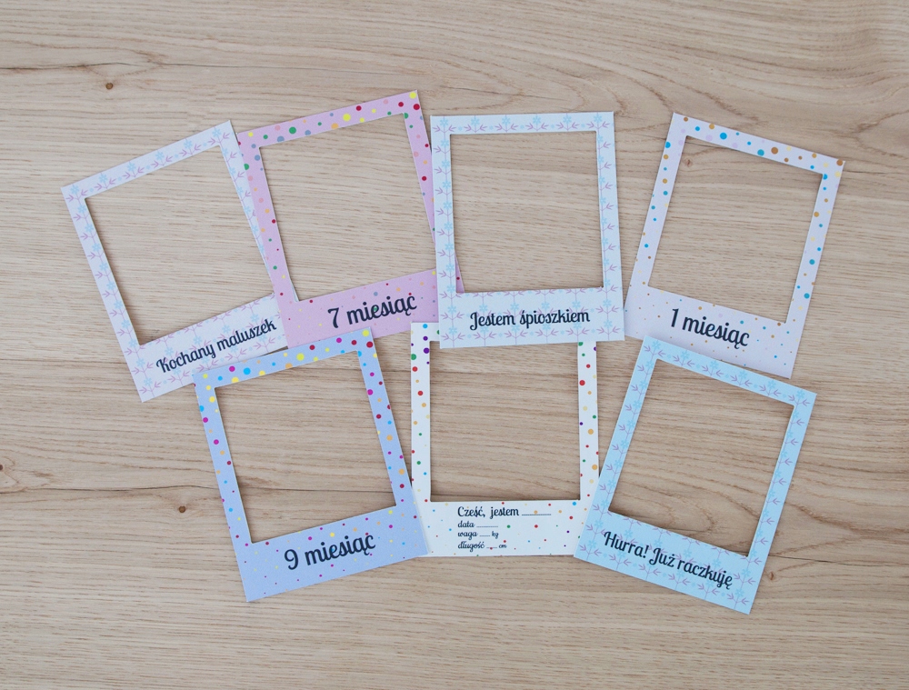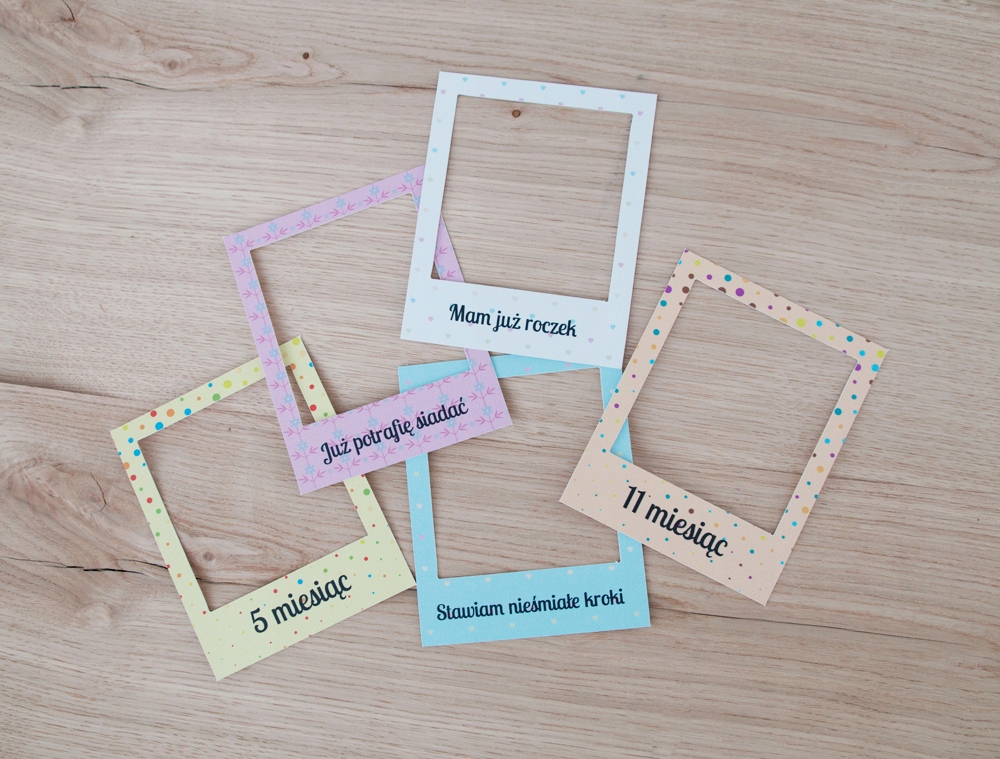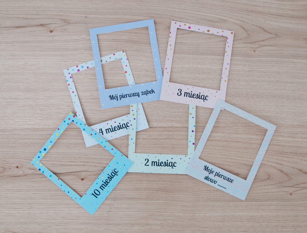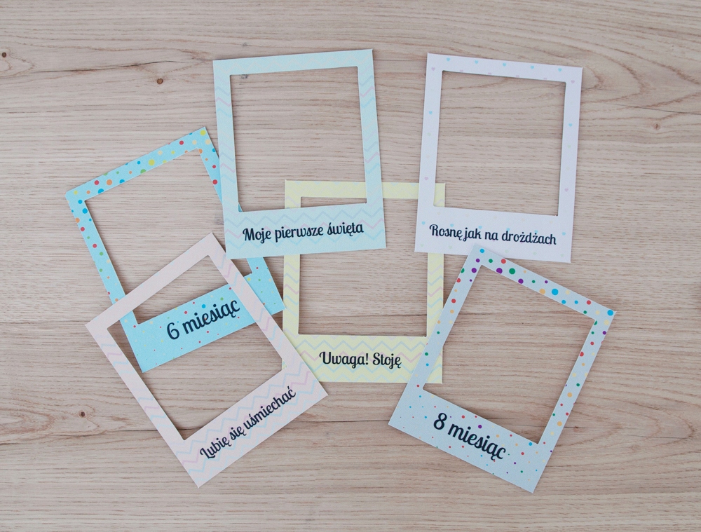 - 24 рамки с принтами в различных узорах с готовыми текстами: Здравствуйте, я... (имя..., дата... рождения, вес..., длина...) 1 месяц, 2 месяца, 3 месяца, 4 месяца, 5 месяцев, 6 месяцев, 7 месяцев, 8 месяцев, 9 месяцев, 10 месяцев, 11 месяцев, мне уже годик, Я люблю улыбаться, Ура! Я уже ползаю, Мой первый зуб, Мое первое слово..., Я уже могу сесть, Делаю робкие шаги, Внимание! Я стою, я соня, Я расту, как сорняк, Моё первое Рождество, Милый малыш