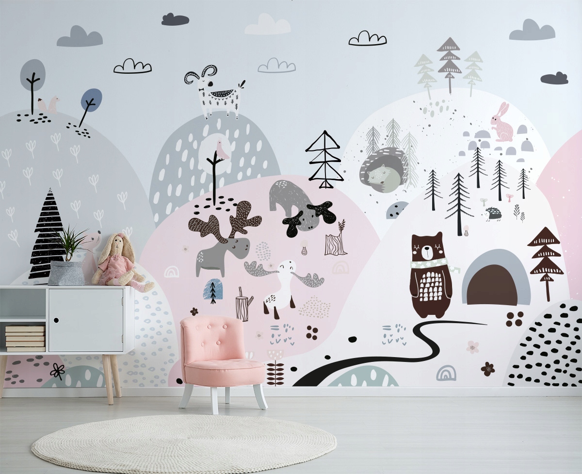 Фотообои Скандинавские горы серо-розовые 3D ЭФФЕКТ