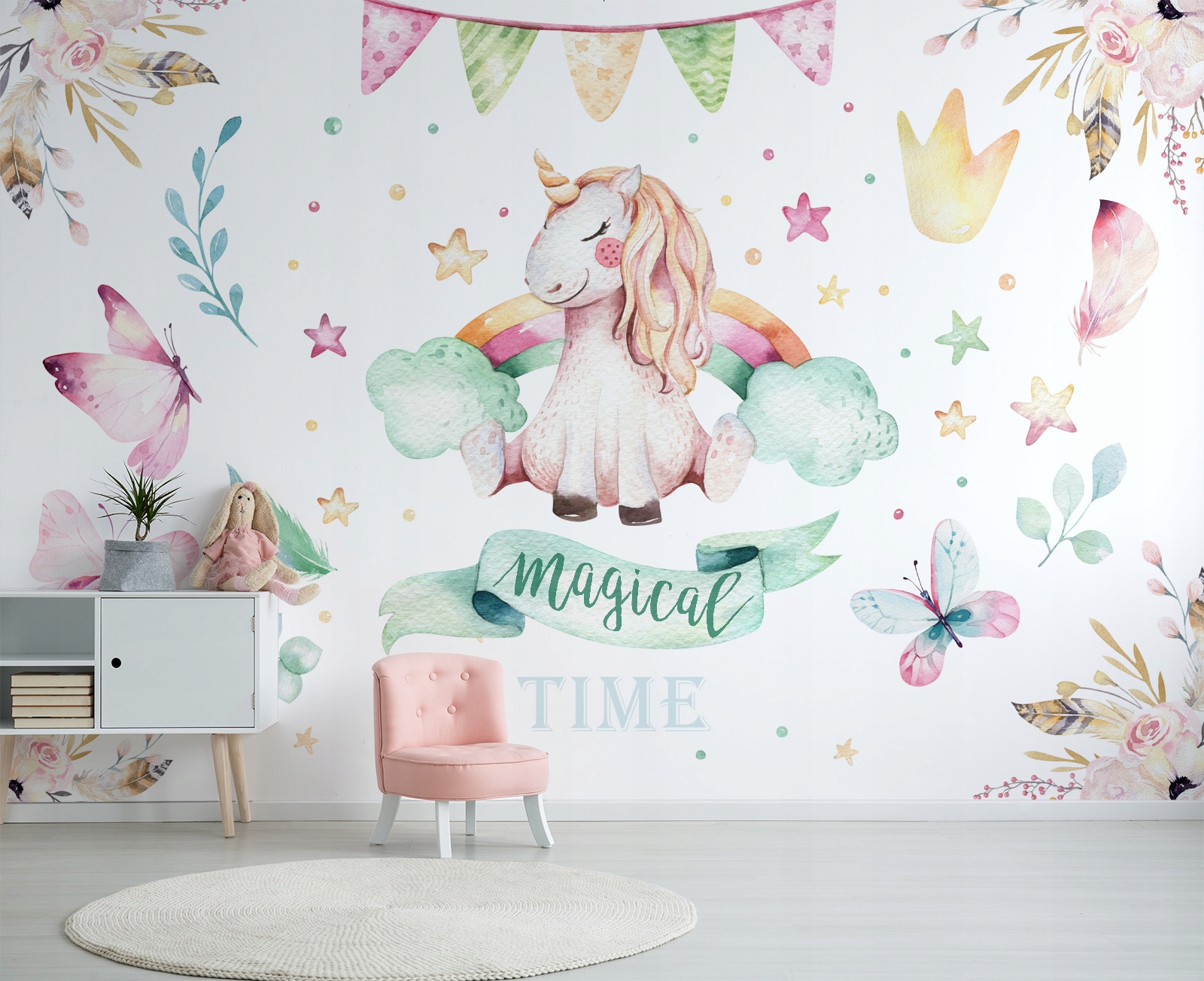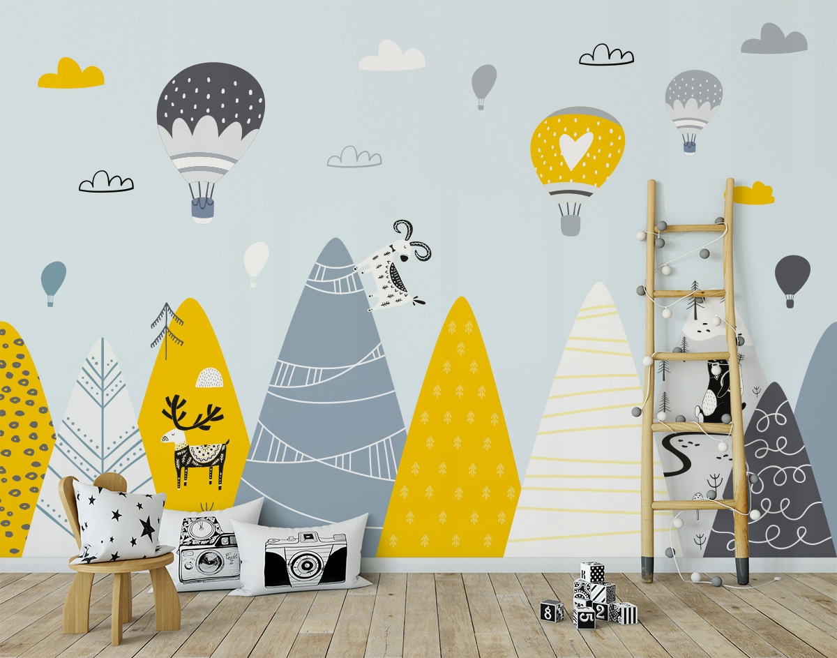 Фото обои на размер единорог лес горы воздушные шары in