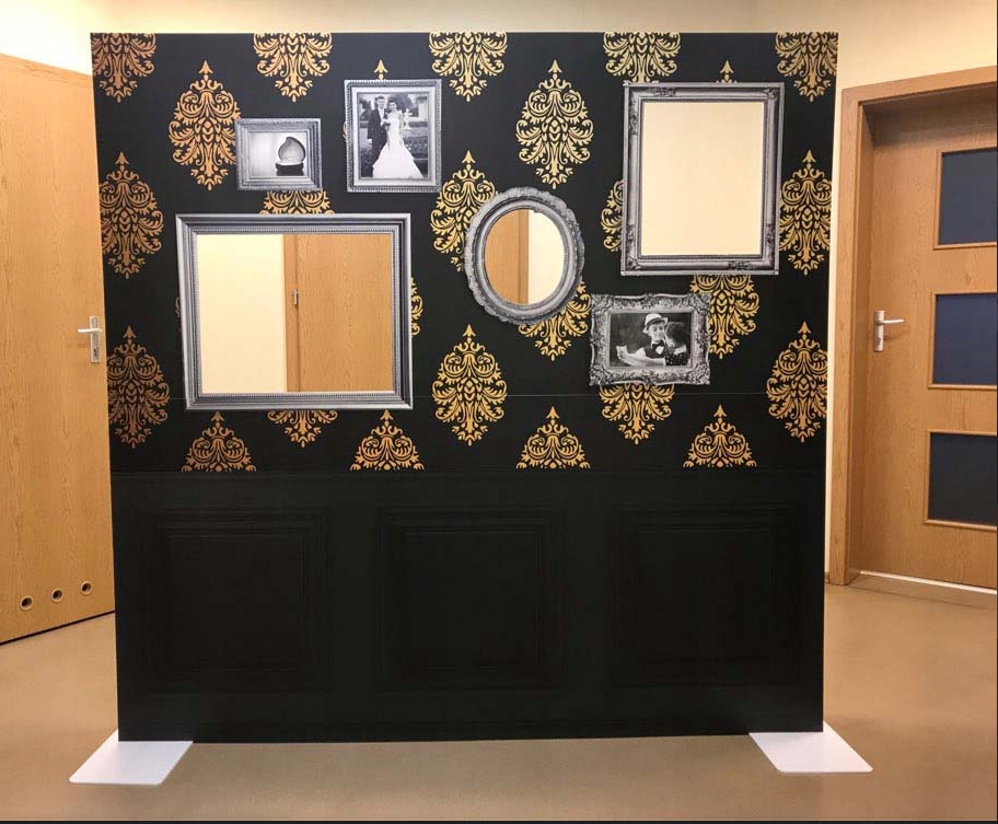 Складная фотостена с прямоугольной или контурной графикой, предназначенная для показа в помещении: выберите дизайн