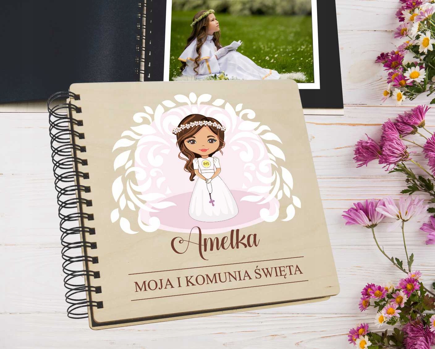 ДЕРЕВЯННЫЙ ФОТОАЛЬБОМ С ЦВЕТНОЙ ПРИНТОМ И ИМЯ РЕБЕНКА.